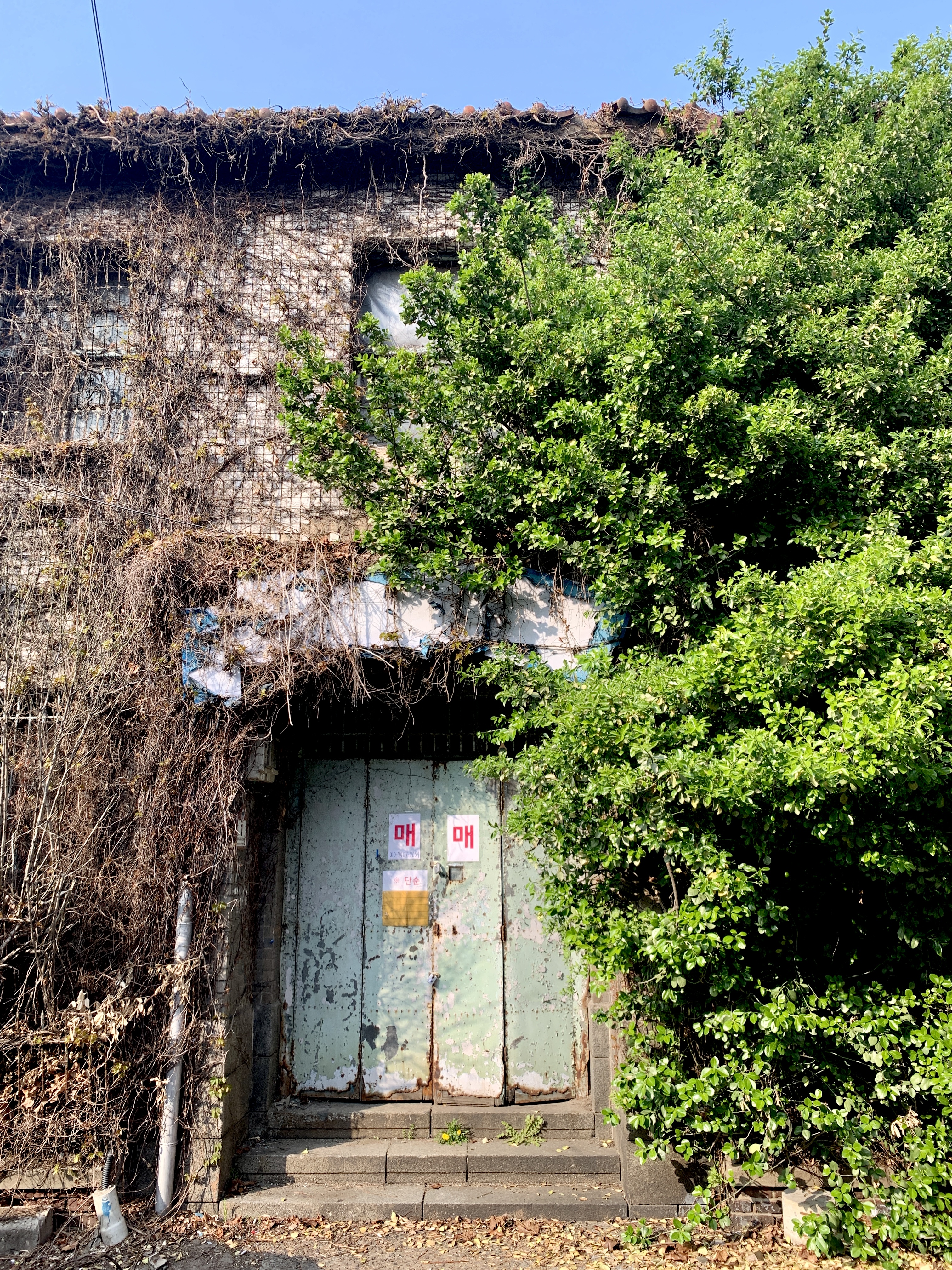 오래된 동네라 다양한 칼라와 풍성한 초록잎들이 폐가도 아름답다.