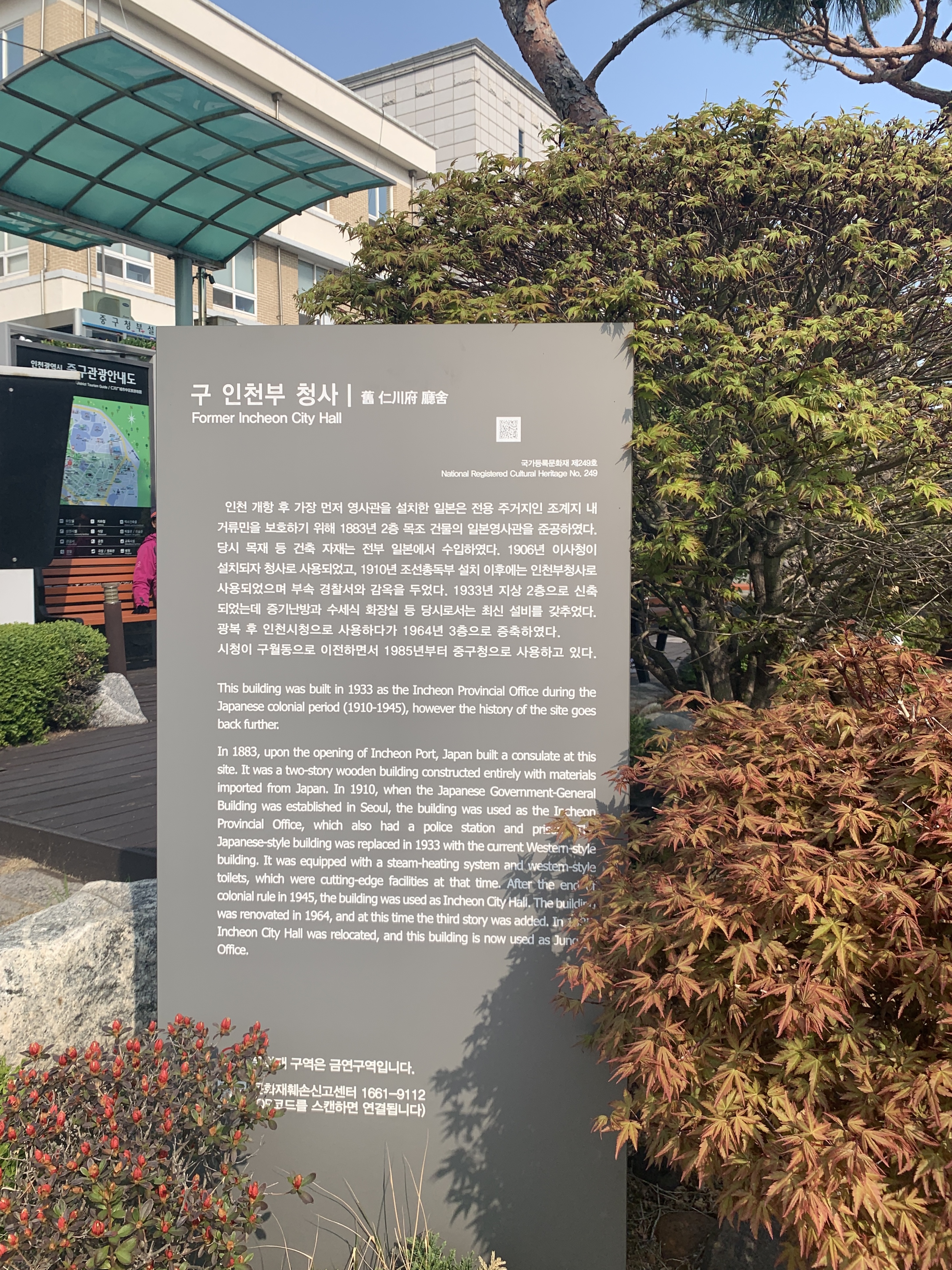 구 인천부 청사로 주차하기 편해 간 곳인데 근대사에 아픔이 있는 장소이기도 하다.
