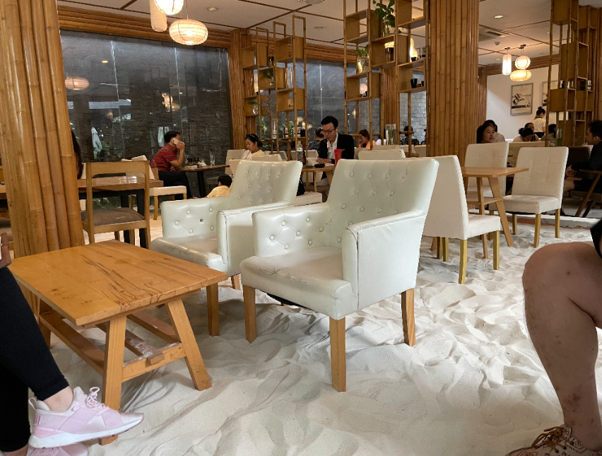 여러 체인점 찾아간 곳은 다이아몬드 플라자에 있는 지점으로 카페에 모래사장을 만들어 놨습니다.