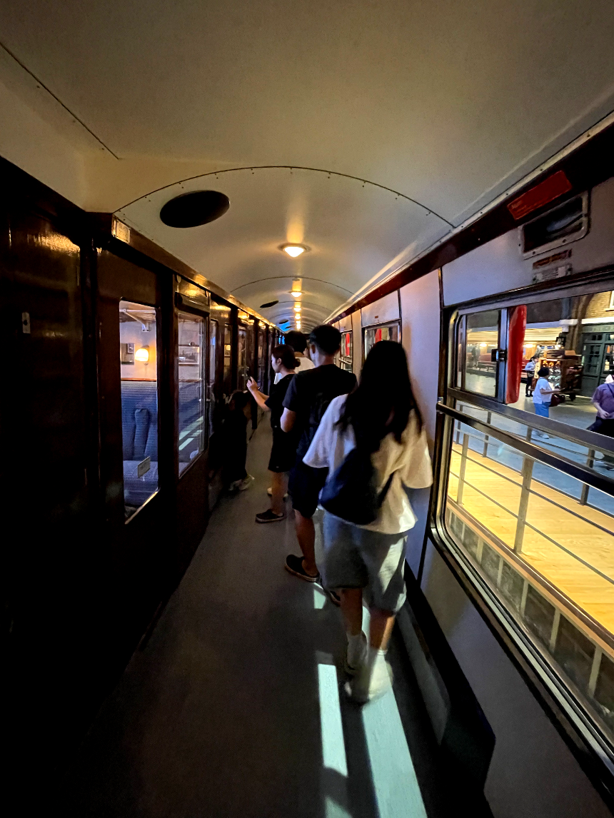 이렇게 여러 개의 객차가 연결되어 있어, 내부는 아늑하고 고풍스러운 분위기를 자아냅니다.