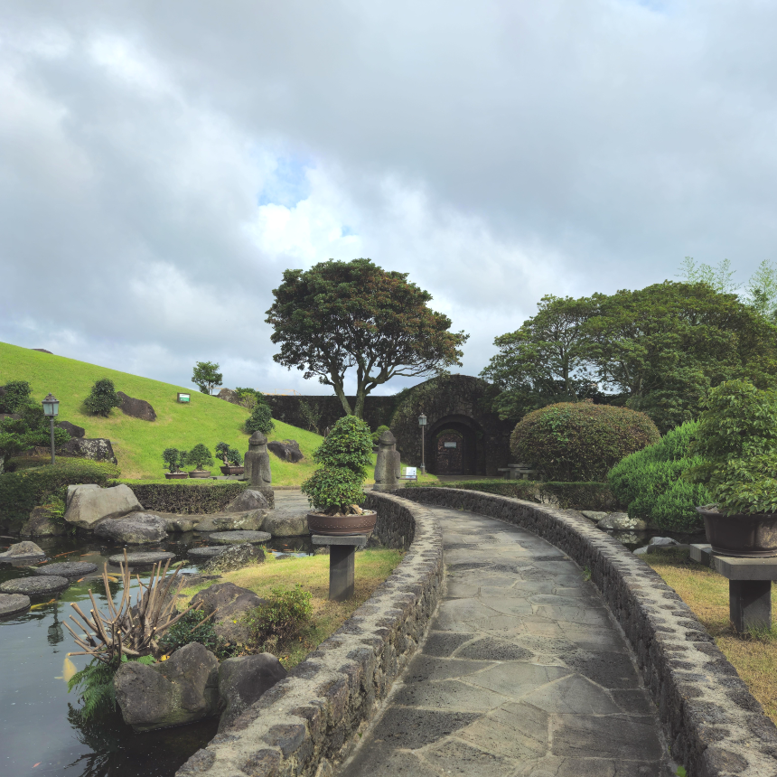 유구한 세월을 간직한 한국 고유의 정원수와 분재, 그리고 괴석과 수석이 잔디광장과 오름의 여백을 따라 전시돼 있으며, 돌 하나하나마다 성주엽 원장님 손으로 직접 다듬어 쌓아 올린 거대한 화산석 돌담과 돌문, 그리고 곳곳에 쏟아져 내리는 폭포와 연못은 자연석 석조건물과 조화를 이루어 독창적인 한국 정원의 모습을 갖고 있어 제주의 자연과 멋을 가장 잘 보여주고 있습니다.