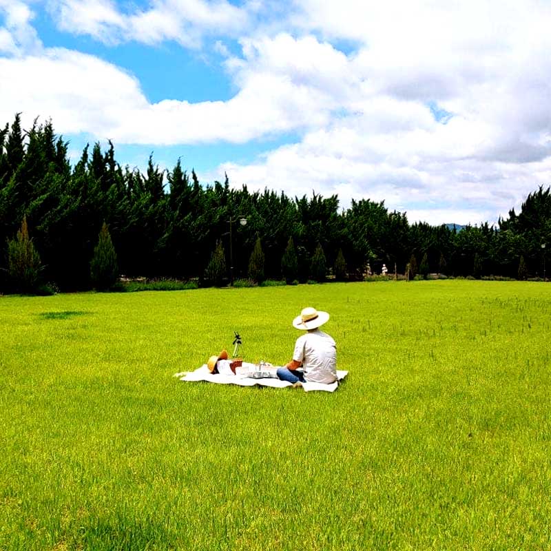 넓은 잔디밭에서는 피크닉 세트를 대여하여 아름다운 자연을 만끽하며 여유로운 식사를 즐길 수도 있습니다.