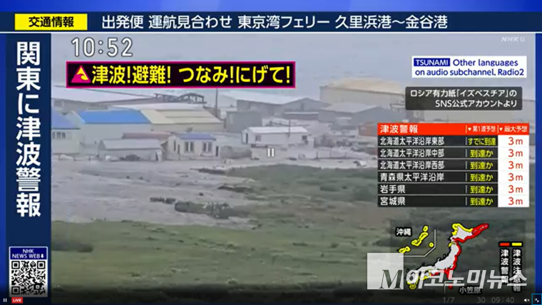 또한 일본 해상보안청은 도호쿠 연안에 모든 선박의 긴급 대피를 요청했으며, 항공편 다수가 결항 처리되었습니다.