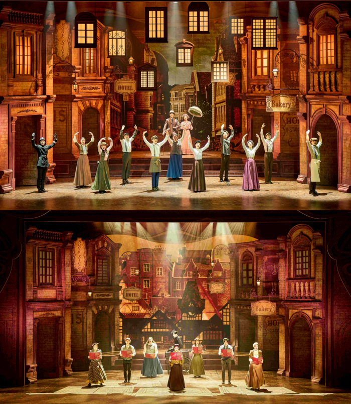 무대 디자인은 19세기 런던을 연상시키면서도, 인물의 내면을 비추는 듯한 공간적 상징성이 돋보입니다. 조명은 붉은빛과 푸른빛을 대비시켜, 억압과 해방을 시각적으로 표현했습니다.