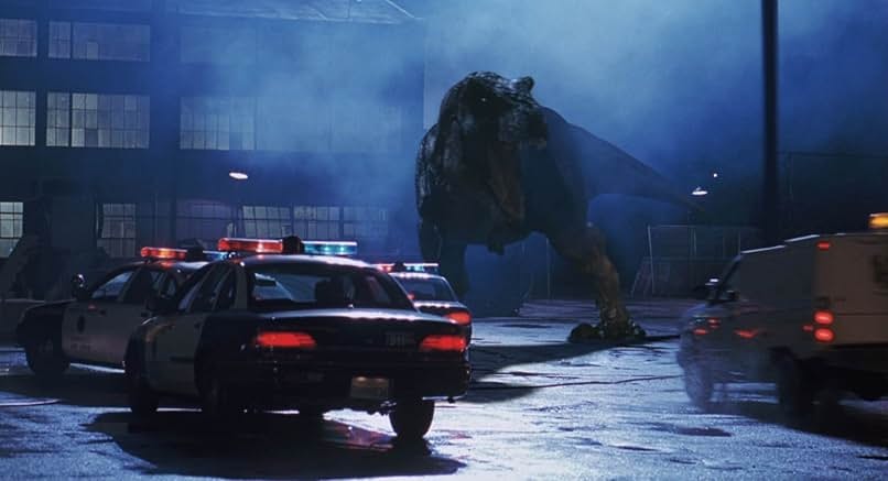 〈잃어버린 세계〉의 클라이맥스는 T-렉스가 샌디에이고 도심에 풀려나는 장면입니다. 이는 시리즈 최초로 공룡이 섬을 넘어 현대 도시 한복판에 나타난 순간으로, 그 자체로 충격과 경이로움을 안겼습니다.