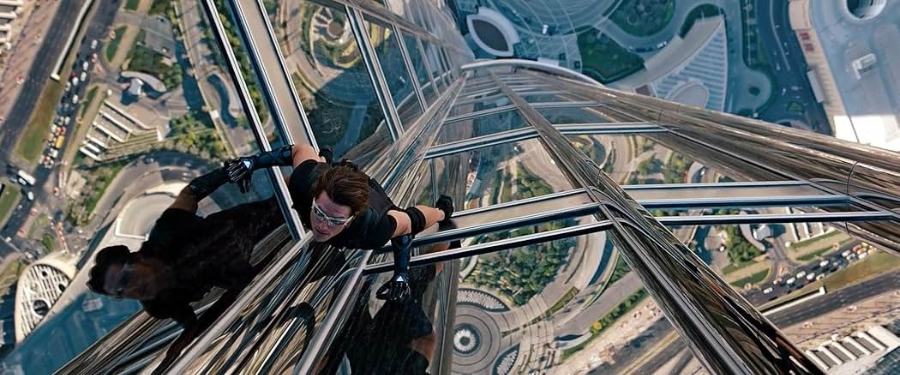 이 영화의 아이코닉 장면 중 하나는 에단이 두바이의 버즈 칼리파 외벽을 기어올라가는 장면입니다. 이 장면은 스턴트맨을 최소화하고 톰 크루즈가 직접 일부 연기를 한 것으로 알려져 있으며, 수많은 관객을 경악하게 했습니다.