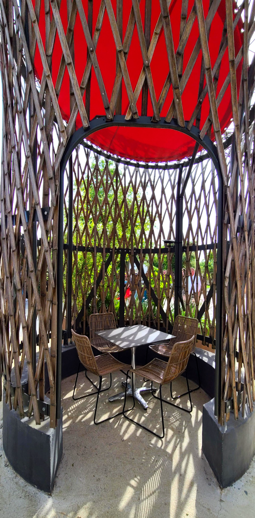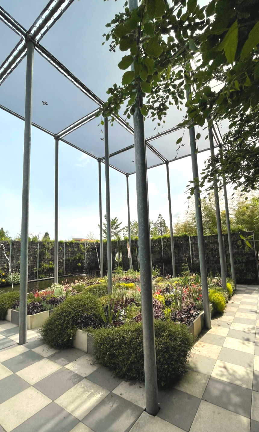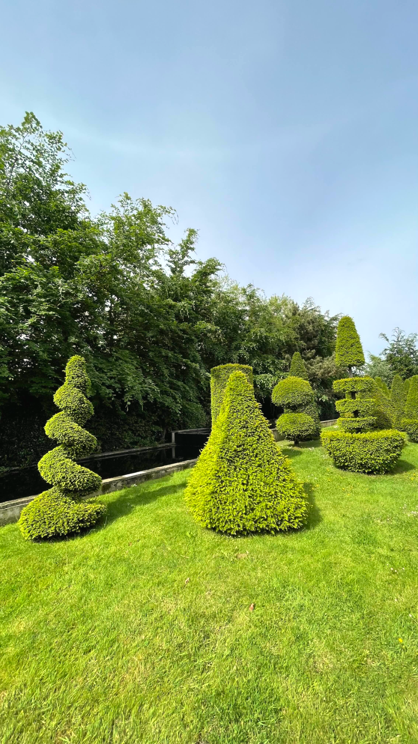 재미있게 가지치기를 한 나무들도, 높은 그늘을 형성하는 파고라도 보입니다.