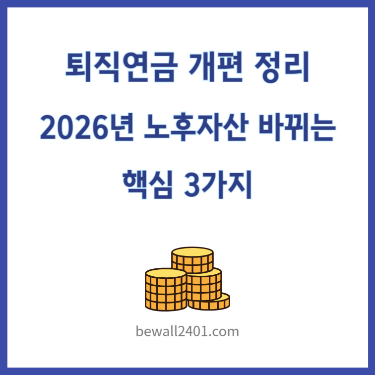 퇴직연금 개편으로 당신의 노후자금은 어떻게 달라질까? 2026년 기준 확정된 제도 변화부터 IRP·DC형 전략까지 한 번에 정리했습니다. 지금 확인하지 않으면 손해입니다.