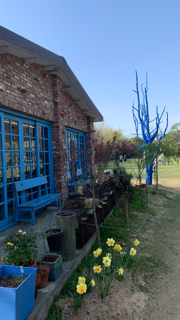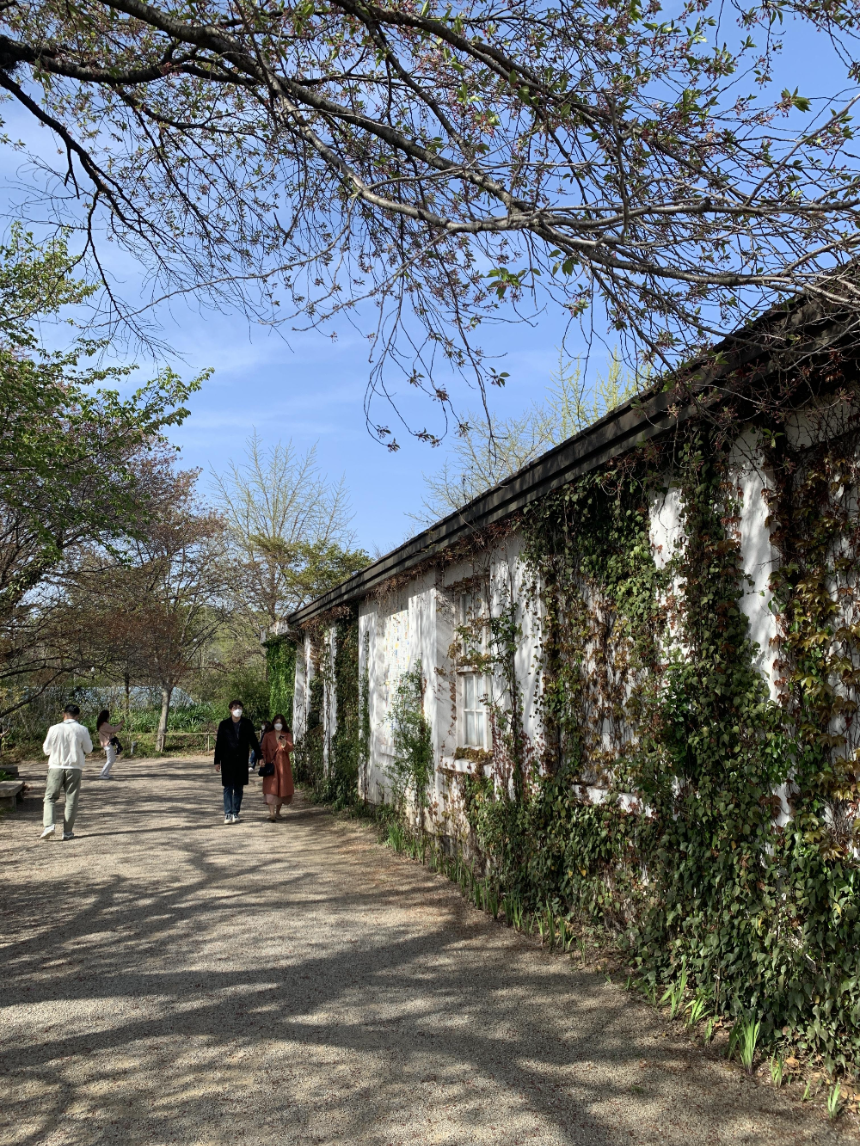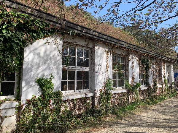 폐교를 리모델링한 거라 과거 교실 입면에 넝쿨들이 치렁치렁 잘 가꾸어졌어요.. ㅎㅎ.