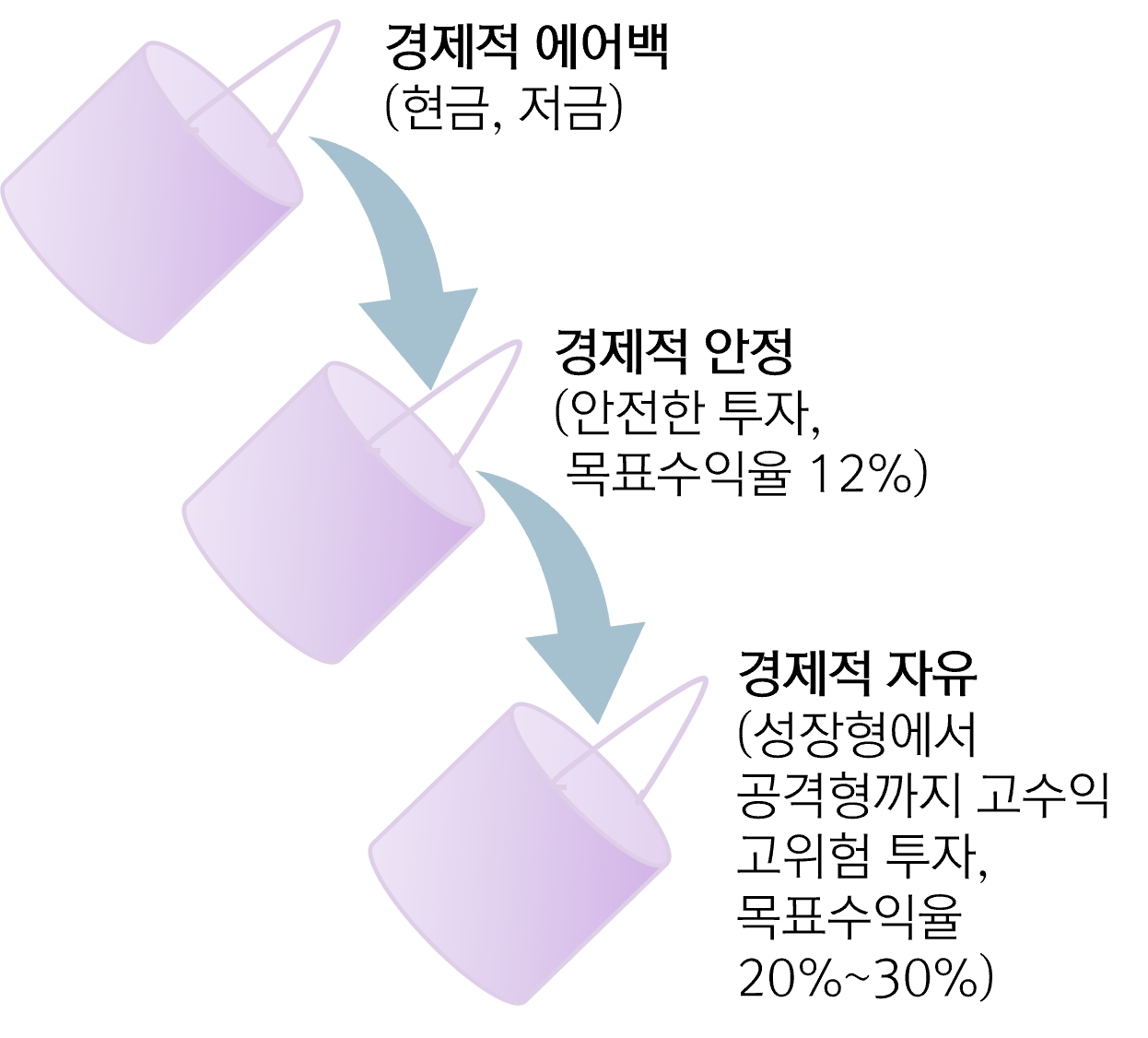 일단 경제적 에어백을 확보하면 장기적 목표인 ‘경제적 자유'의 전제조건을 충족시킨 것이다.