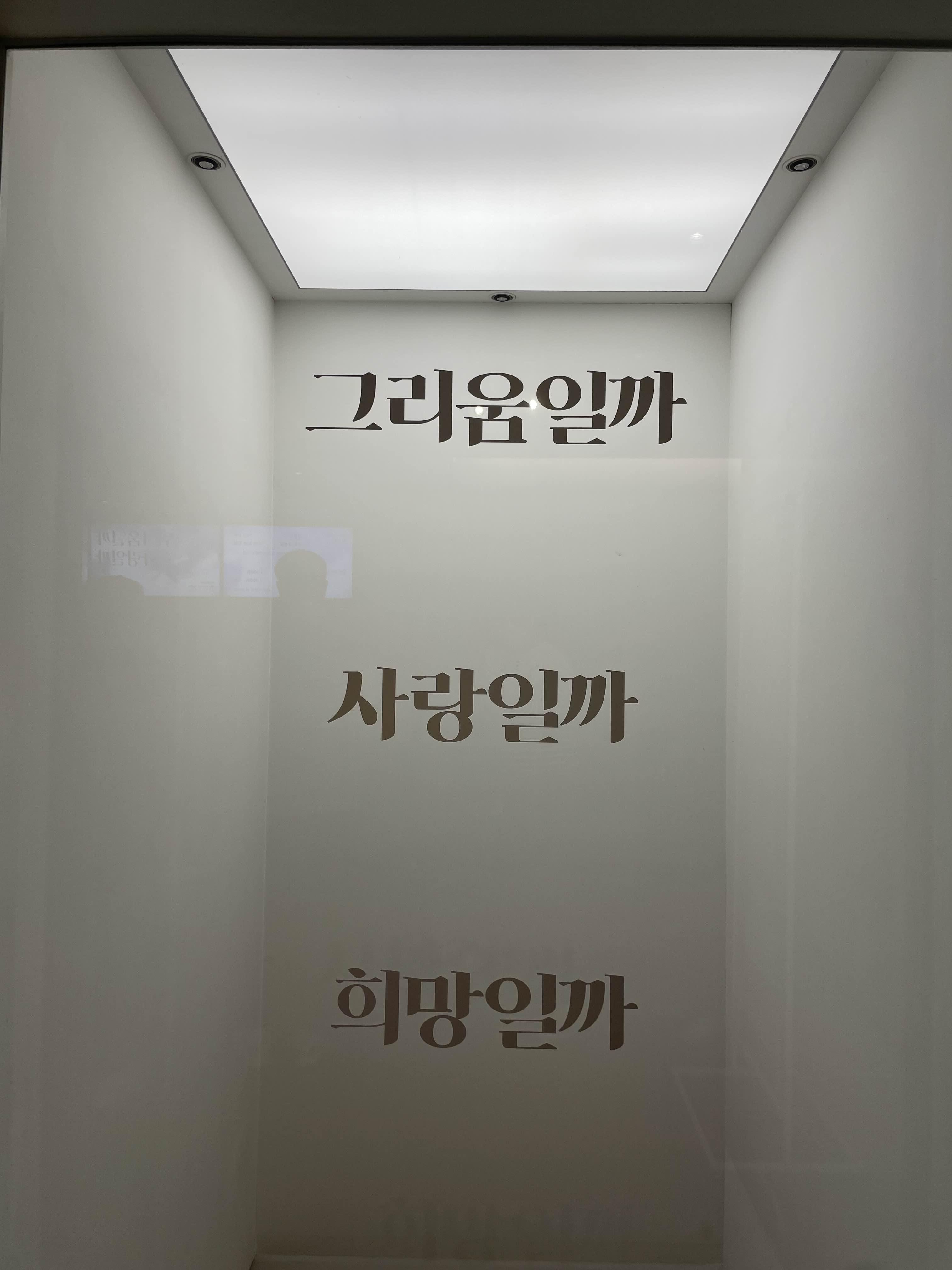 작품을 감성하기에 앞서 요약하자면 2022년, 서울미술관은 개관 10주년 기념 전시 (두려움일까 사랑일까 Fear or Love)를 선보였다. 인생의 모든 순간에 우리와 함께 하는 두 가지 감정, 두려움과 사랑. 많은 예술가들 역시 이 감정 사이에서 깊은 예술혼을 끌어내 작품을 빚어내었다.