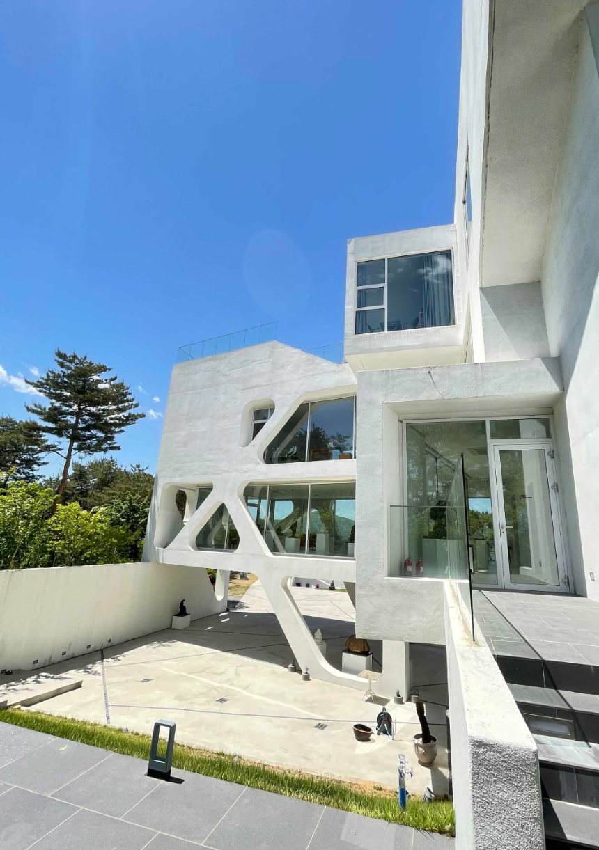 내부 구경을 다 마치고 밖으로 나오니 아까 본 파고라와 필로티가 편한 모습으로 자리 잡고 있습니다.