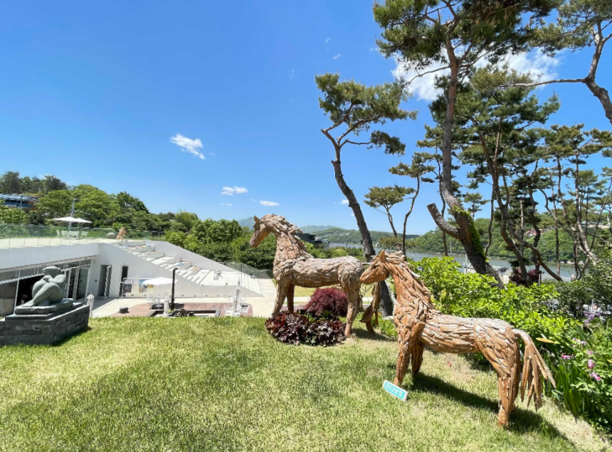 조경공간 사이사이에도 조형물이 배치되어 있습니다.