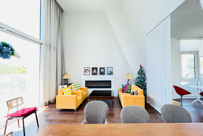 층고를 최대한 활용하여 원색으로 포인트를 두니 근사해 보입니다.