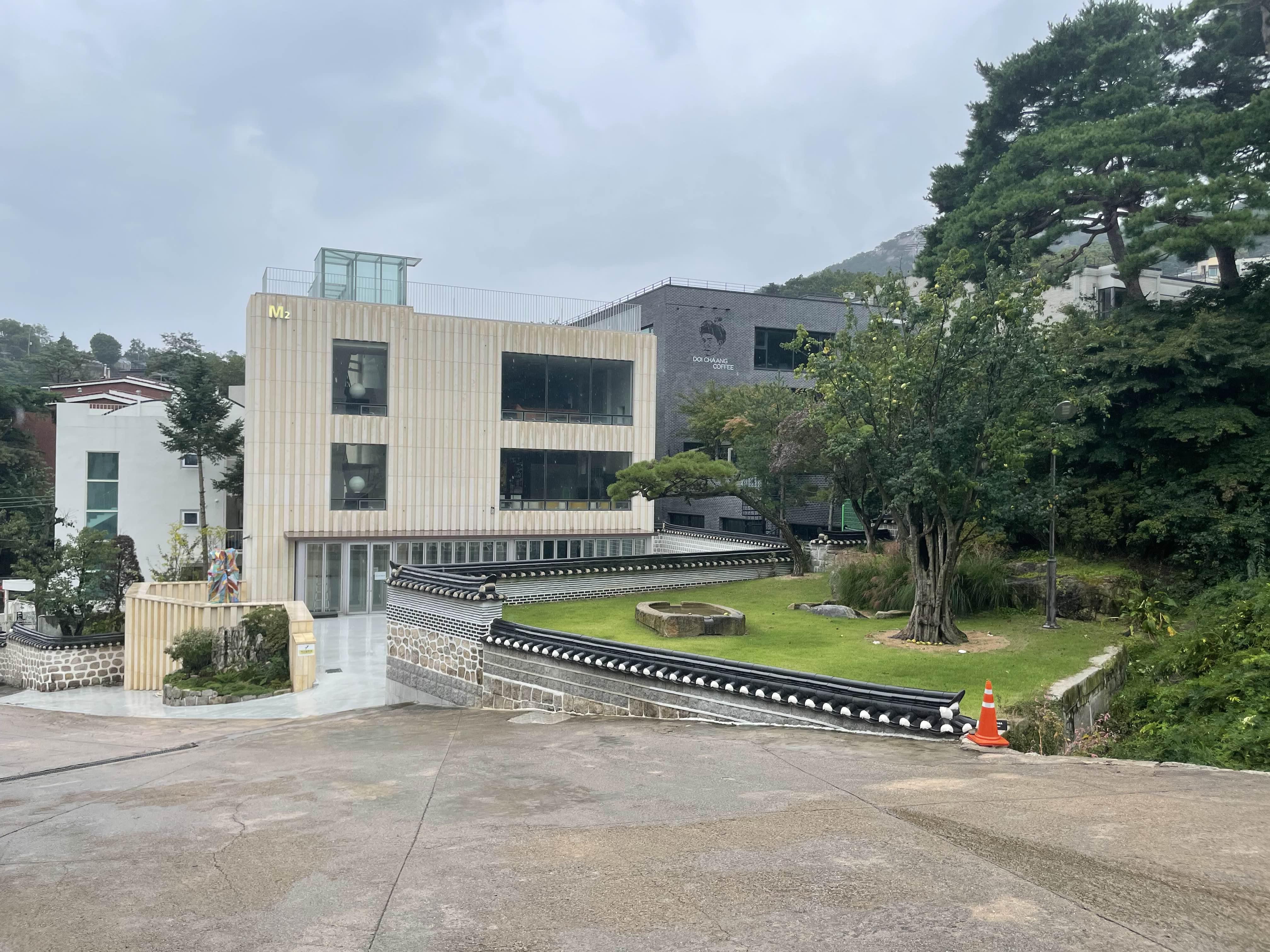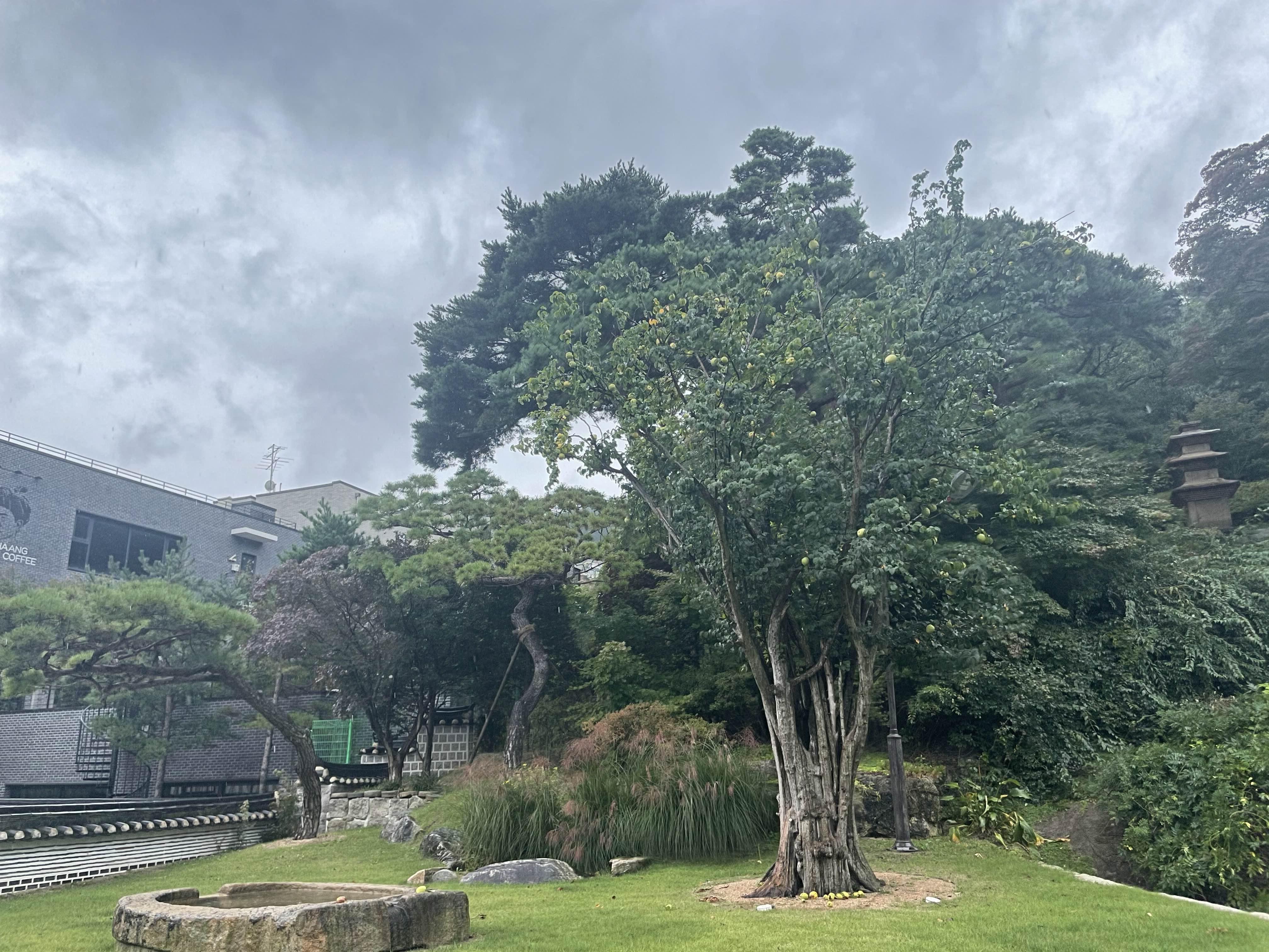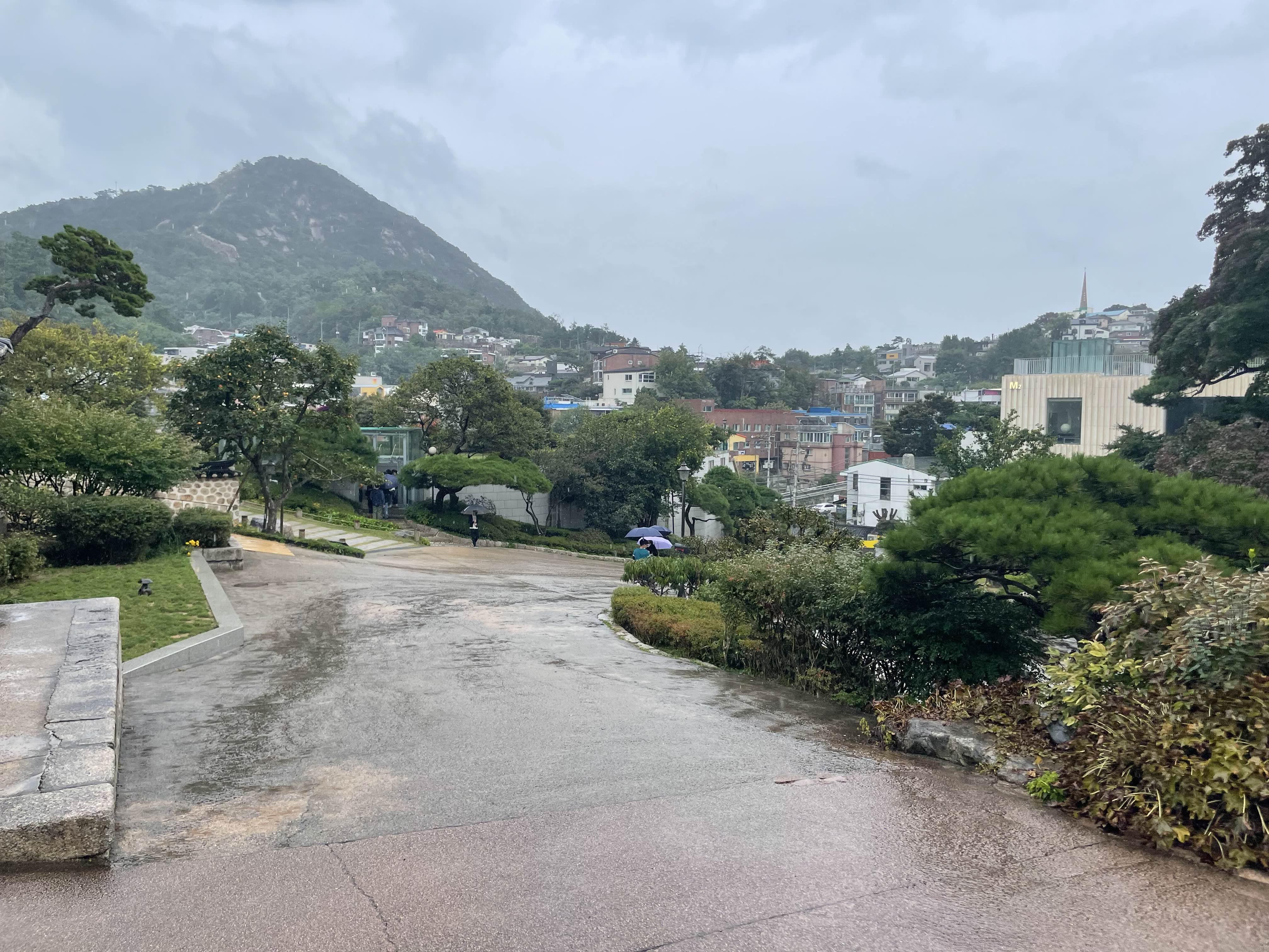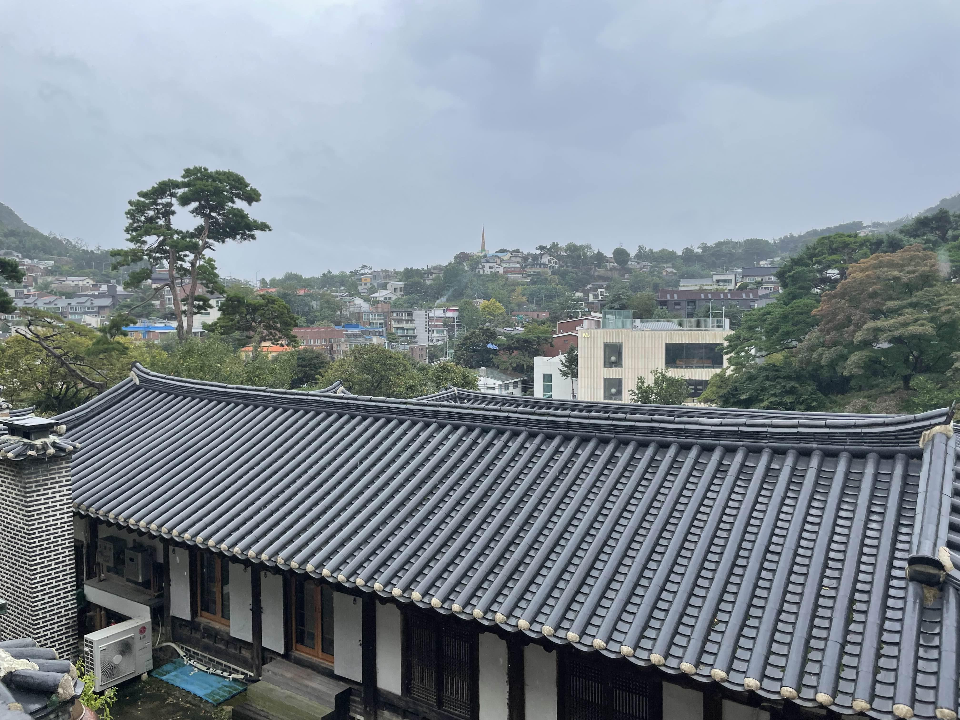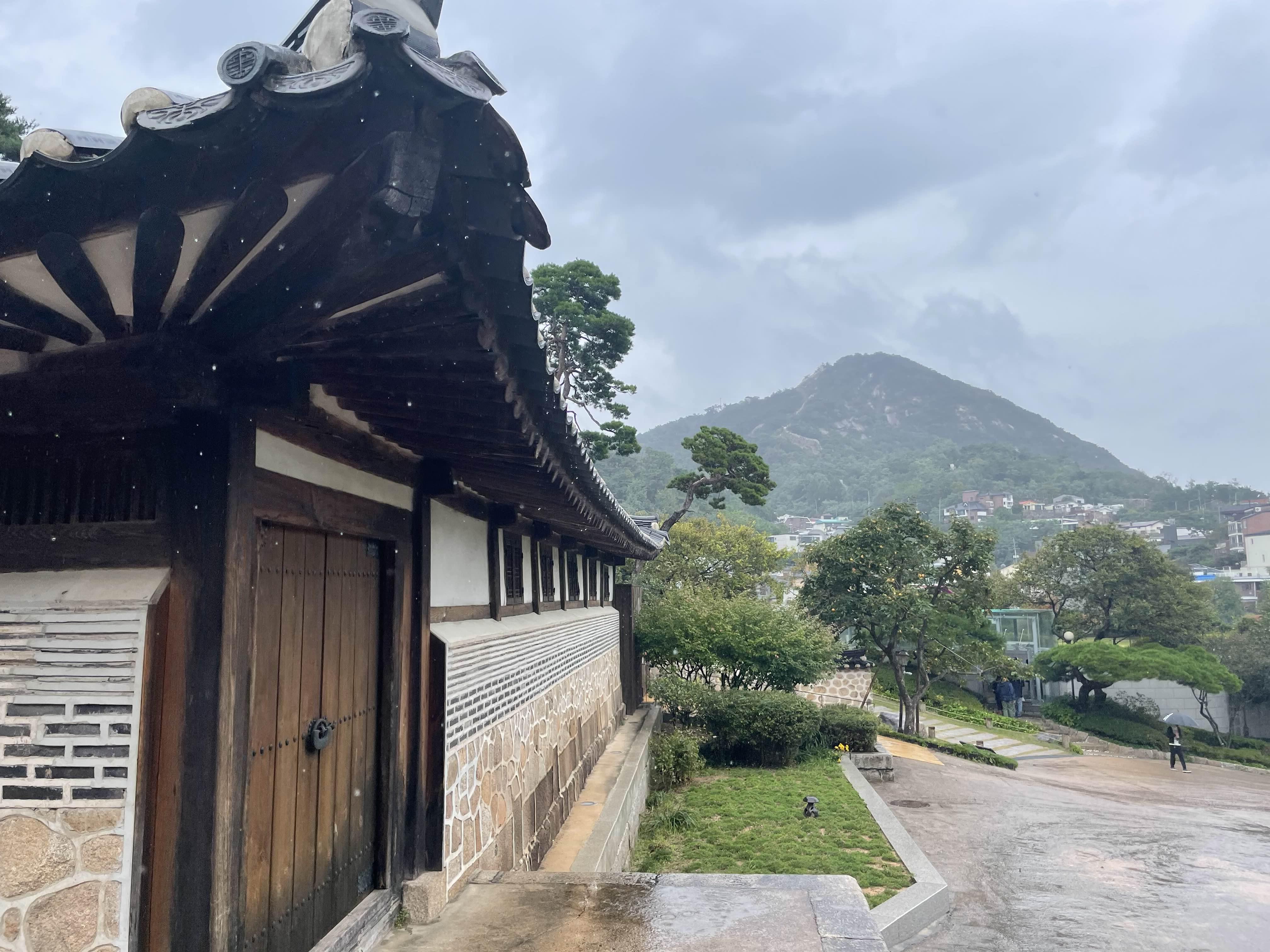 감상 포인트에서 바라다보면 앞쪽에 사랑방과 멀리 서울 부암동, 인왕산 자락이 살짝 보인다.