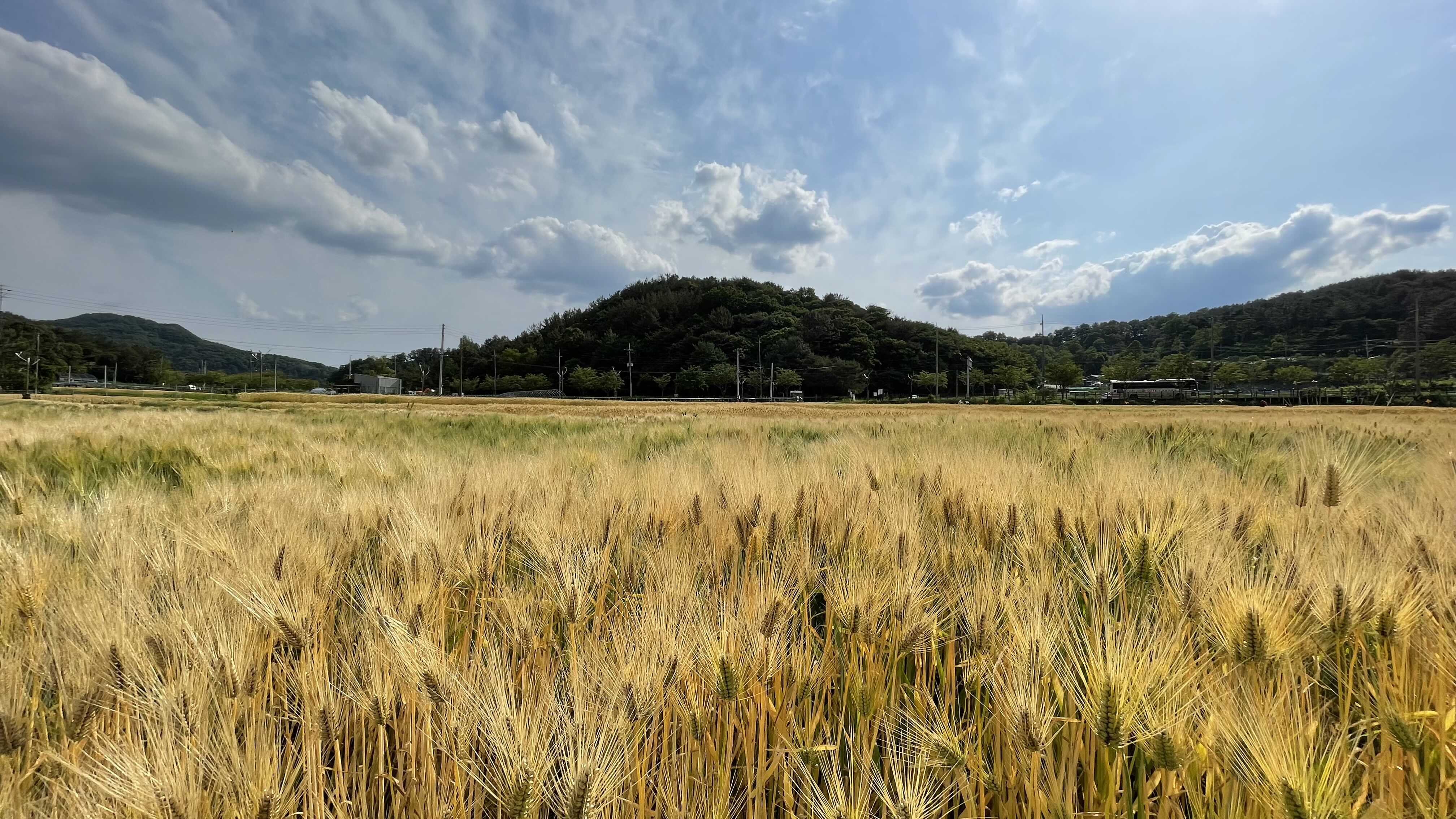 발을 씻으면서 상쾌한 기분을 누리는데 더할 나위 없는 산책이었고 이걸로 마무리하려 계족산 입구를 벗어나려는데 동네 초입에 청보리밭이 이쁘게 자리 잡고 있어 잠깐의 산책을 추가로 했네.