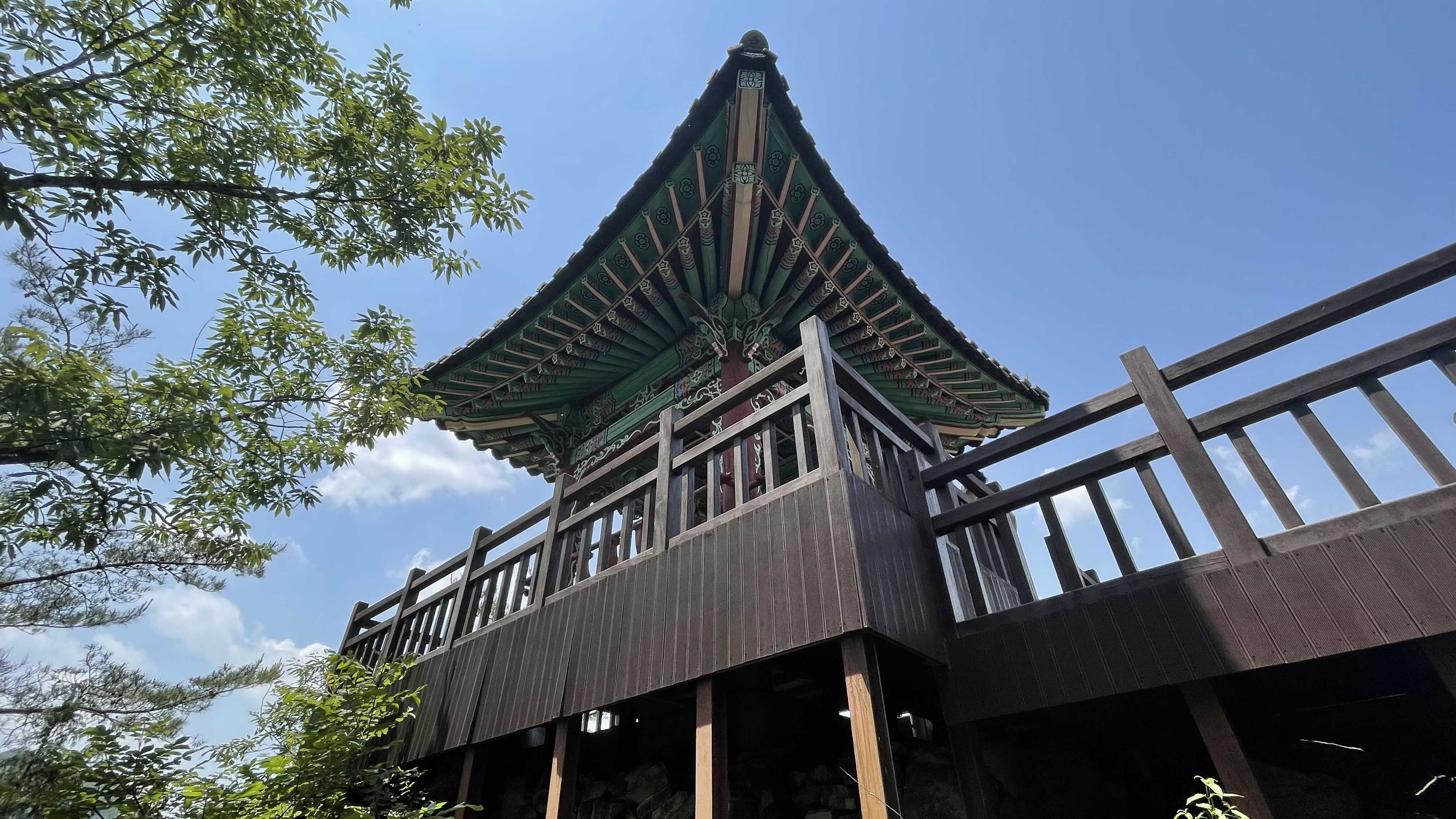 한참을 머물다 하산하고 휴양림 초입 산 위에 '정자'가 있어 용기 내어 가봤다.