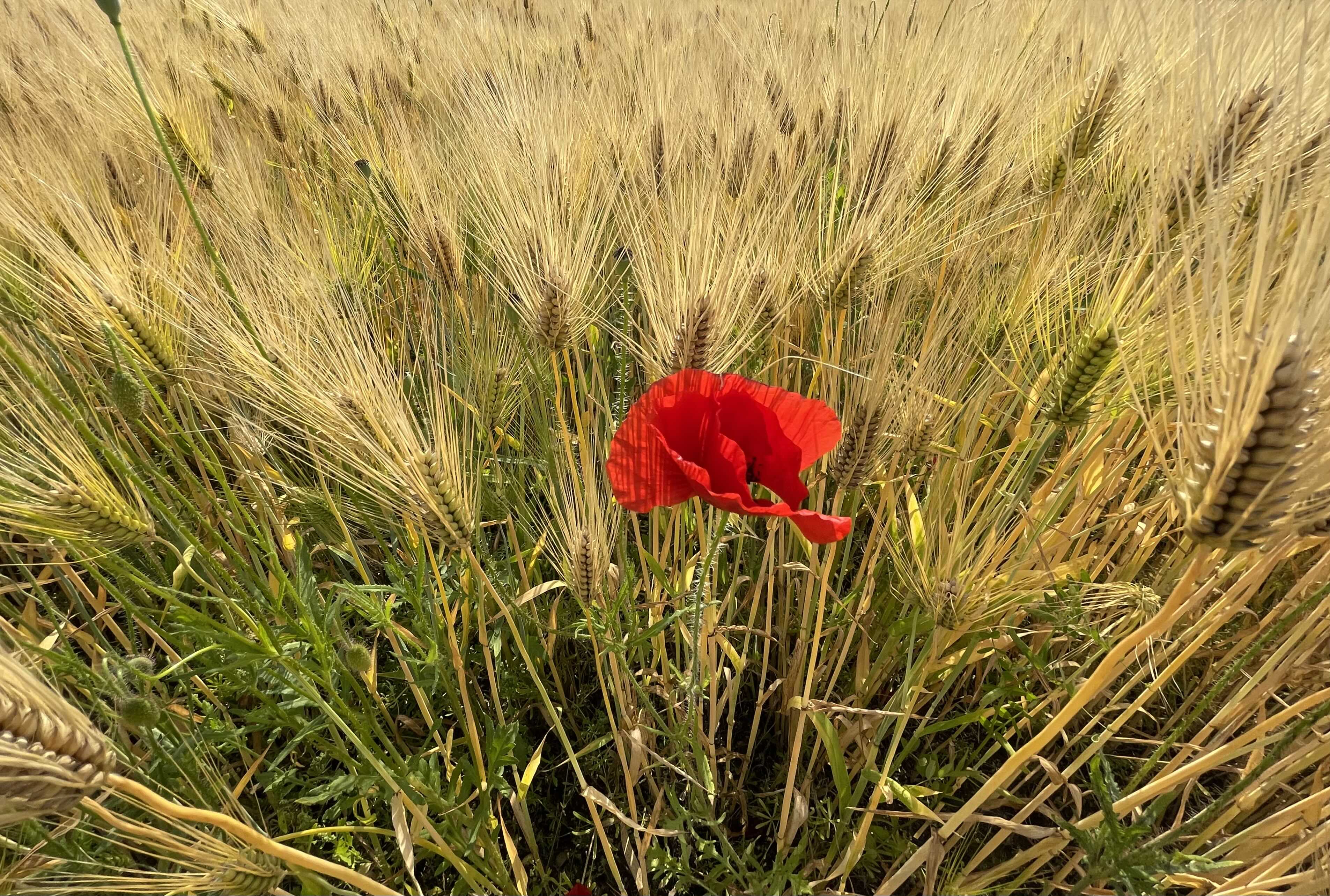 그사이 피어난 양귀비 꽃도 홍일점으로 보인다.