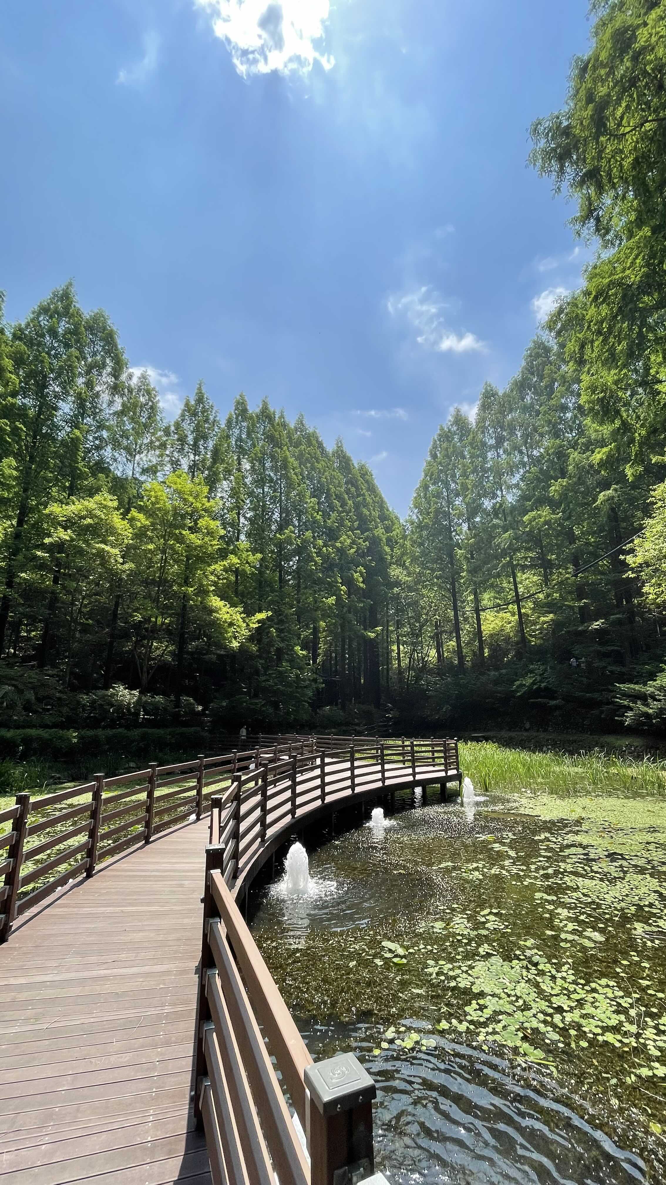 다리를 건너면 매우 높은 메타세쿼이아 나무 사이로 스카이 브리지도 구경을 할 줄 알았는데 코로나로 인해 안타깝게 폐쇄되어 밑에서만 구경을 했다.