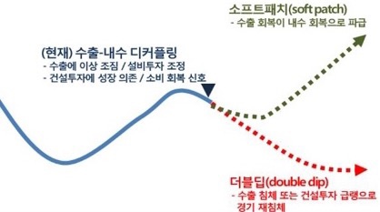 경기가 두 번(doulle) 떨어진다(dip)는 뜻으로, 경기침체가 발생한 후 잠시 경기가 회복되다가 다시 경기침체로 접어드는 연속적인 침체 현상을 의미한다. 더블딥(double dip)은 2001년 미국 모건스탠리사의 이코노미스트였던 로치(S. Roach)가 미국경제를 진단하면서 처음 사용한 용어로, 경기순환의 모습이 영문자 'W'를 닮았다 해서 W자형 경기변동(또는 "W자형 불황)이라고도 한다. 일반적으로 경기침체는 2분기 연속 마이너 스 성장을 보이는 경우를 말하므로 더블딥은 정기침체가 발생하고 잠시 회복기미가 관측되다 다시 2분기 연속 마이너스 성장에 빠지는 것으로, 1980년대 초 있었던 미국의 경기침체는 더블딥의 예로 자주 거론된다.