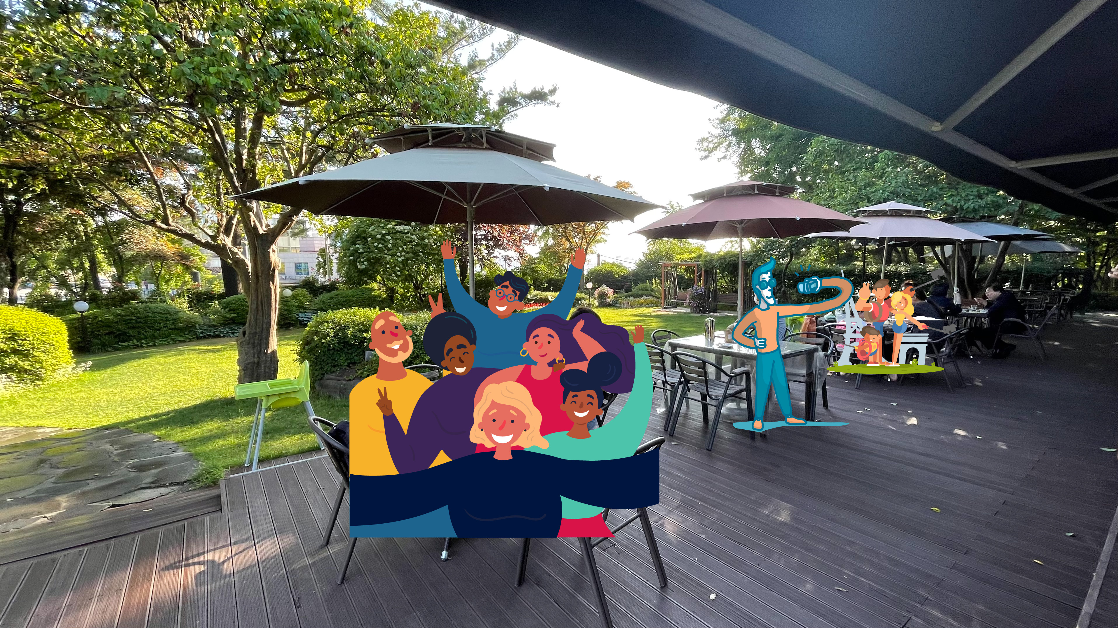 야외공원 테이블엔 군데군데 사람들이 담소도 나누고 책도 보고 힐링도 한다.