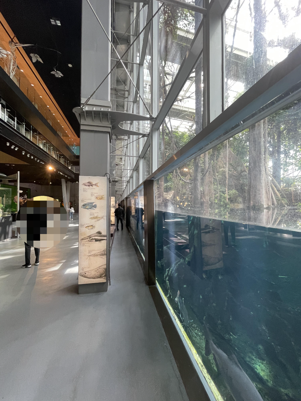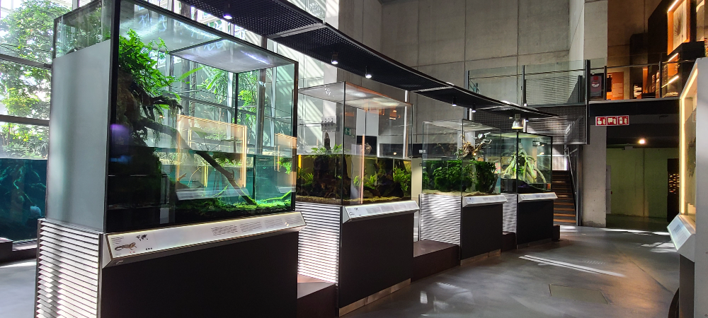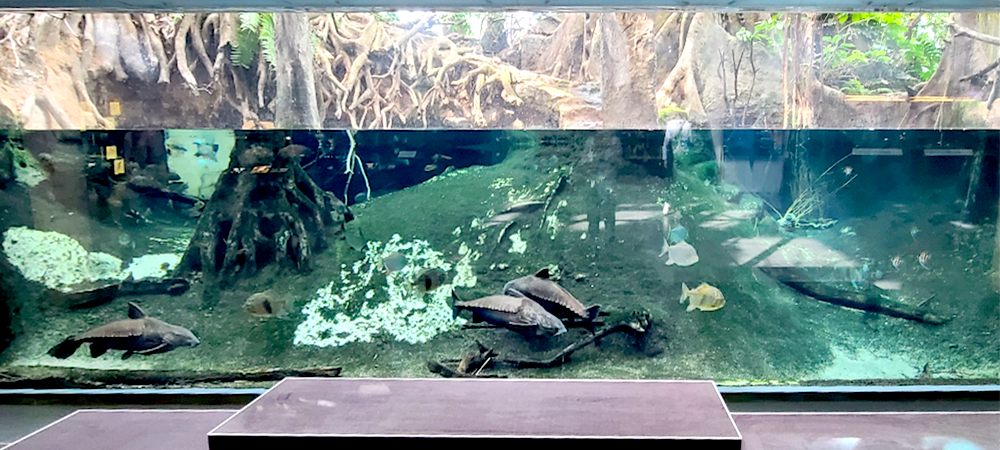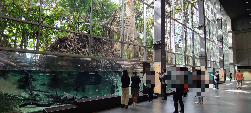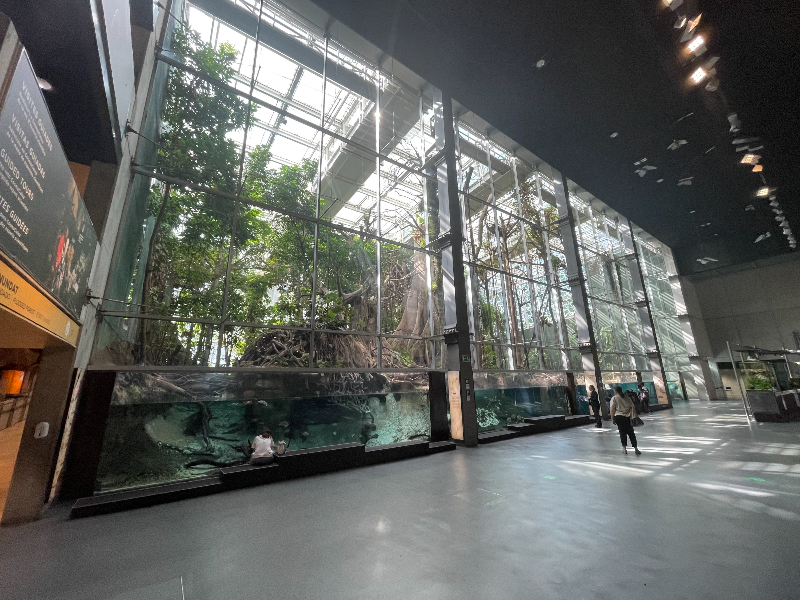 나무들 외 새, 곤충, 개구리, 피라니아, 카피바라, 악어 등 100종이 넘는 살아있는 종들이 전시되어 있어 사람들의 시선을 끌게 합니다.
