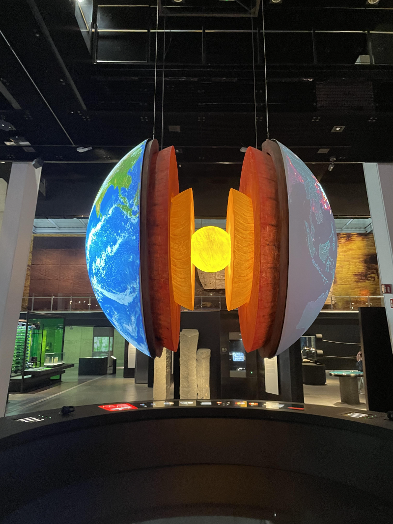 아래 디스플레이의 터치를 통해 지구의 역사를 생동감 있게 보여줍니다.