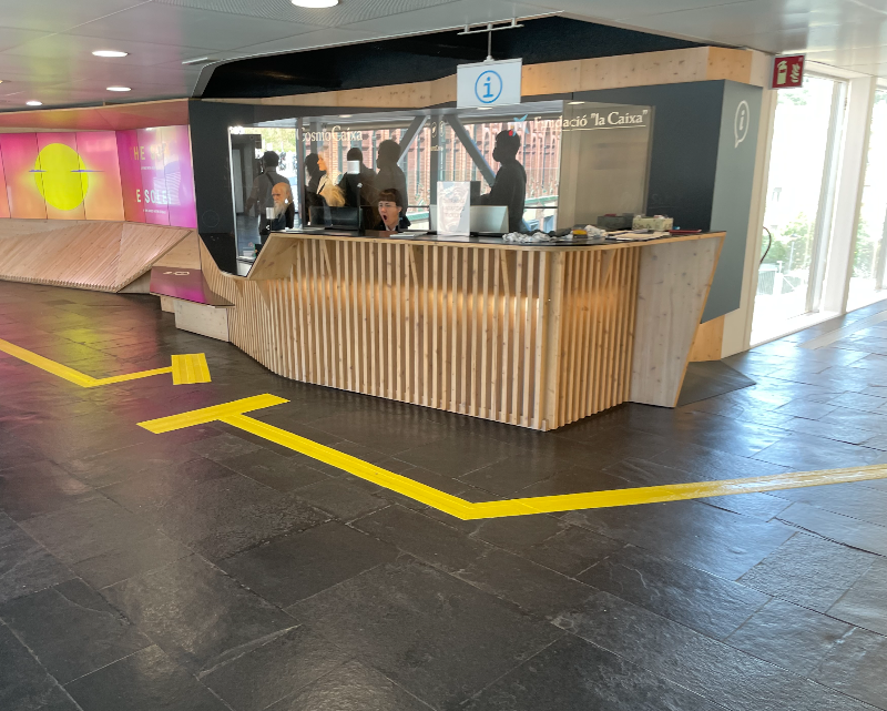안내데스크는 철저히 장애인을 배려한 계획으로 설계되었고 곳곳의 목재형태의 루버와 칼라는 사람들이 편하게 관람할 수 있도록 해줍니다.