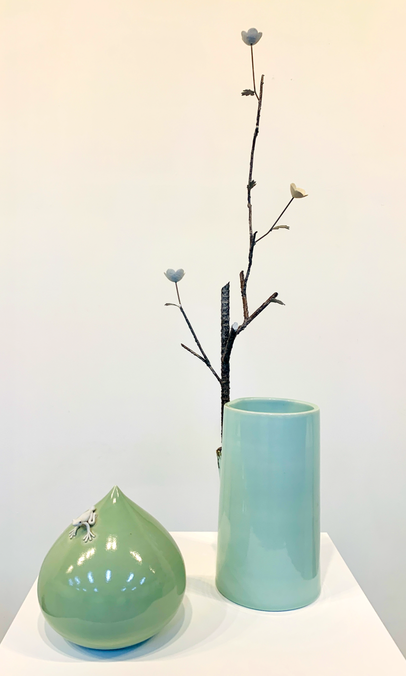 도자기와 꽃, 청개구리를 콘셉트로 다양한 흙과 도료, 외부 마감재(구리, 니켈 등), 굽는 온도에 따른 칼라 차이에 따라 작품이 만들어졌고 본인의 시대별 창작시도의 변화를 하나하나 부연설명을 해주면서 작품의 의도를 명확하게 알게 되었습니다.
