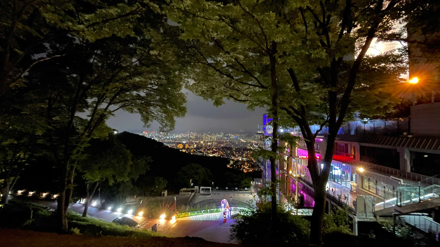 오르막길을 10여분 오르면 널찍한 주차장이 나오고 버스도 여기서 하차하게 되는데 내리자마자 떡하니 남산타워의 야경이 보이는데 나름 멋집니다.