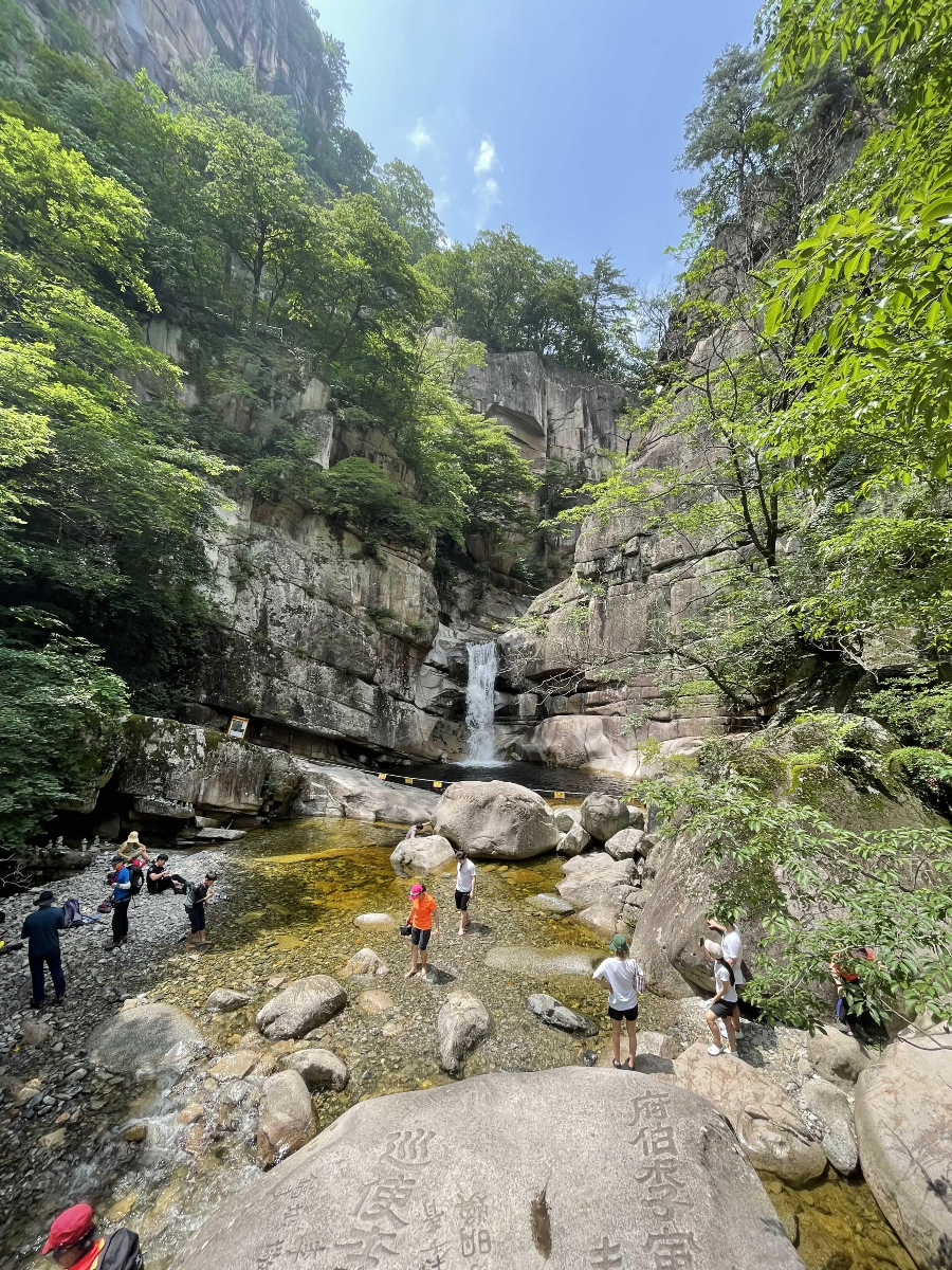발바닥 바위 반대편을 보면 용추폭포가 보이는데 사람들이 너무 많아 멀리서만 감상을 했습니다.