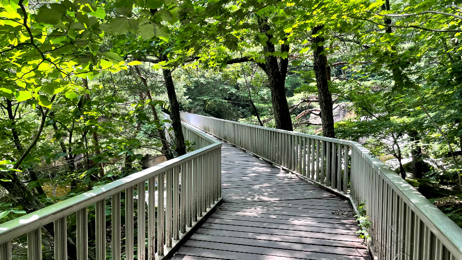 무릉계곡의 흐르는 물 사이로 산행 동선이 왔다 갔다 하다 보니 계속적으로 다리를 지나가게 되는데 다리에서 보이는 경치도 너무 멋집니다.