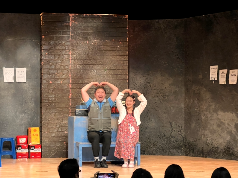 배우들이 연극 홍보를 위한 인스타 업로드를 부탁하며 귀여운 인증샷 포즈를 계속적으로 보여주기도 하고 간단한 퀴즈를 통해 선물 증정식도 하며 공연은 바로 시작되니 마음을 열고 호응해 주시길 바랍니다.