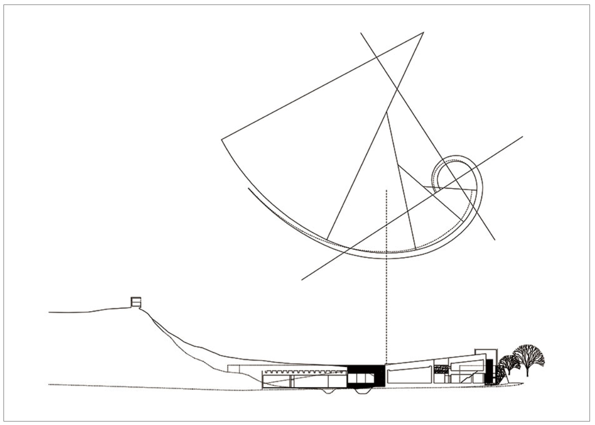 먼 진입로에서 산줄기의 끝자락을 감아 도는 미술관 자체의 덩어리에서 경험은 시작되는 것이죠.