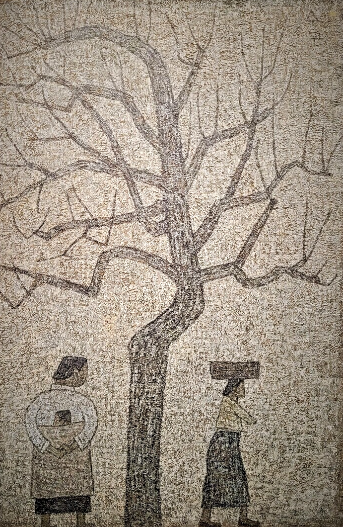 그 힘들고 고단한 삶 속에서도 삶의 힘겨움을 탓하지 않고 그렇게 살아가고 있는 서민들의 무던한 마음을 그렸습니다. 절구질하는 여인, 광주리를 이고 가는 여인, 길가의 행상들, 아기를 업은 소녀, 할아버지와 손자 그리고 김장철 마른 가지의 고목들...