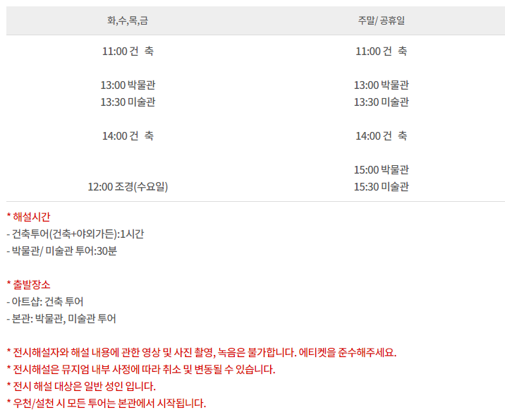 휴무일 : 월요일 (월요일이 공휴일인 경우 정상 개관)