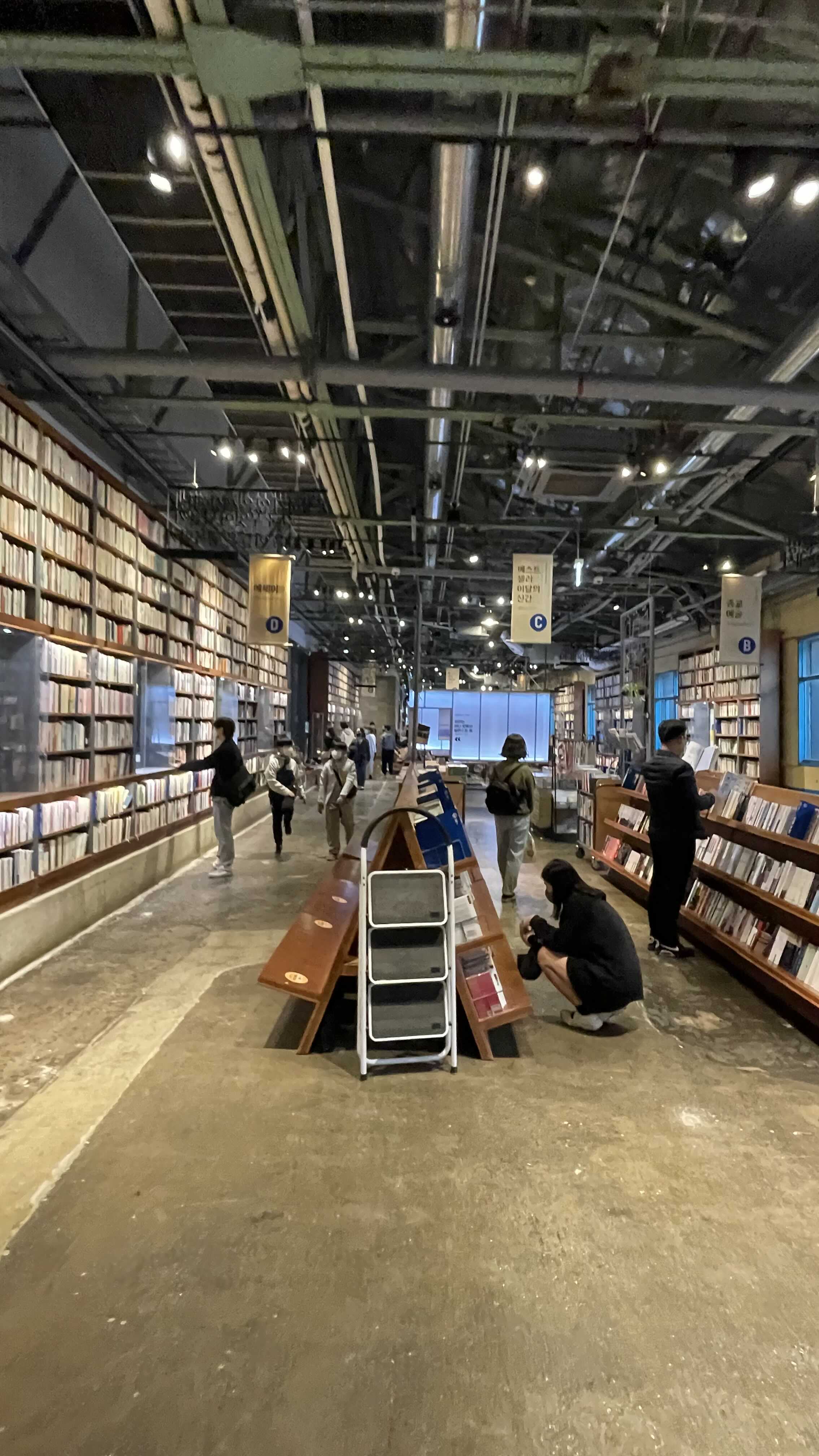 이곳은 대형 중고서점 내부. 공장의 외관을 유지한 채 멋지게 내부를 개조하여 사람들이 바글바글하다.