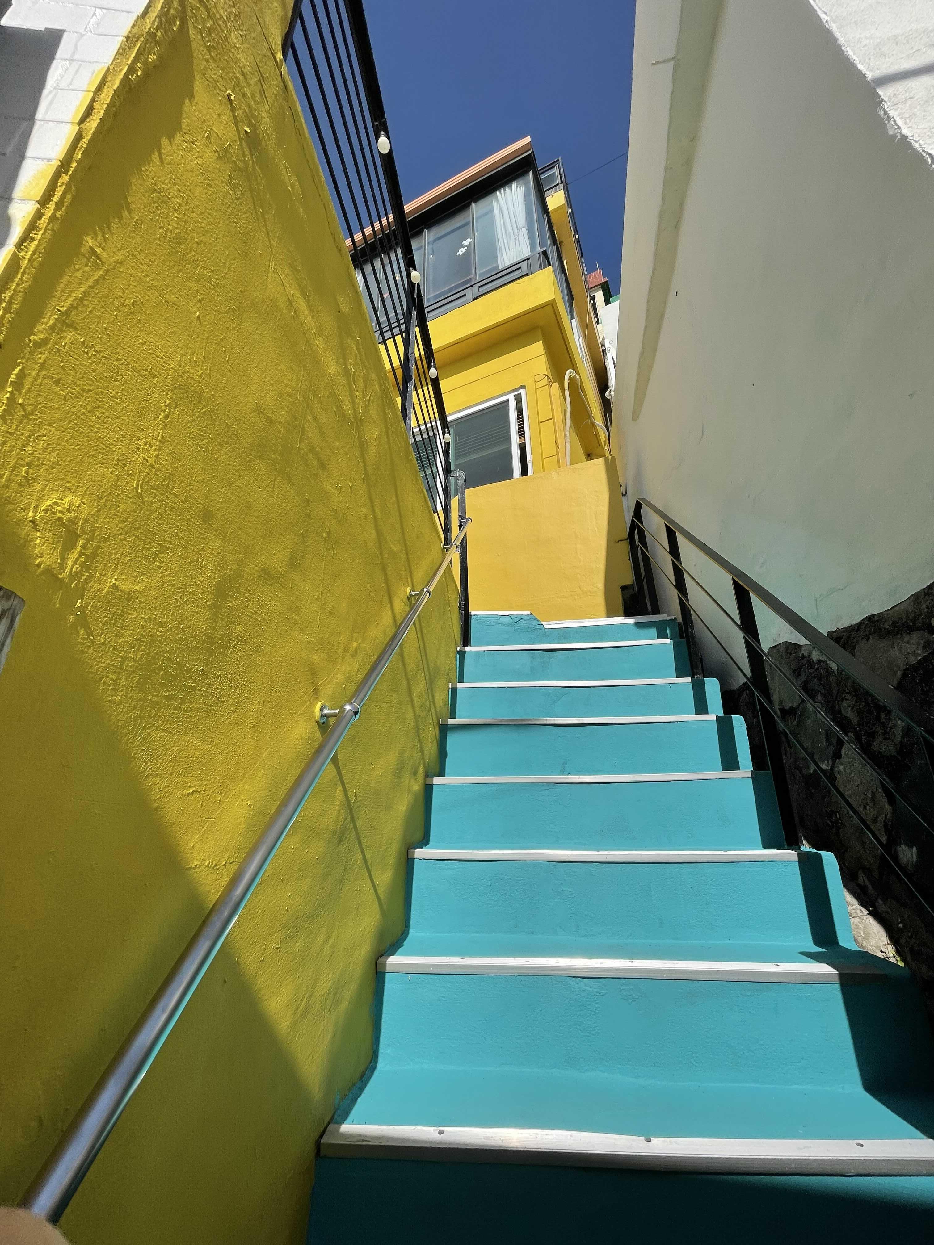 단차 나는 구간의 옹벽들은 화사한 칼라로 단장을 하고 오래된 집들은 카페. 소품 가게 들로 변모해 있는데 이곳은 아직도 계속 변화가 진행되고 있다고 한다.