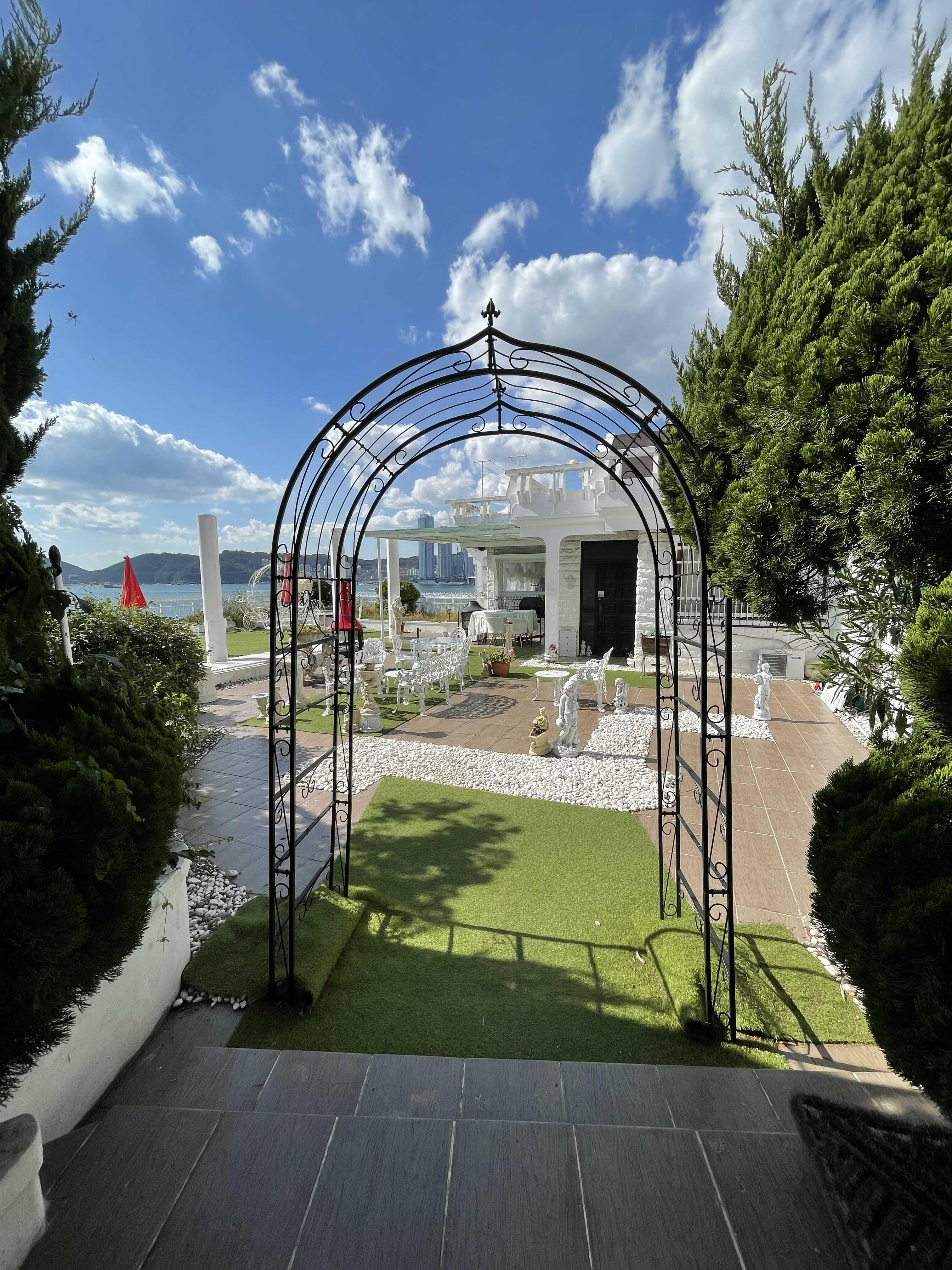 분홍빛의 문도 마찬가지로 하늘빛과 잘 어울린다.