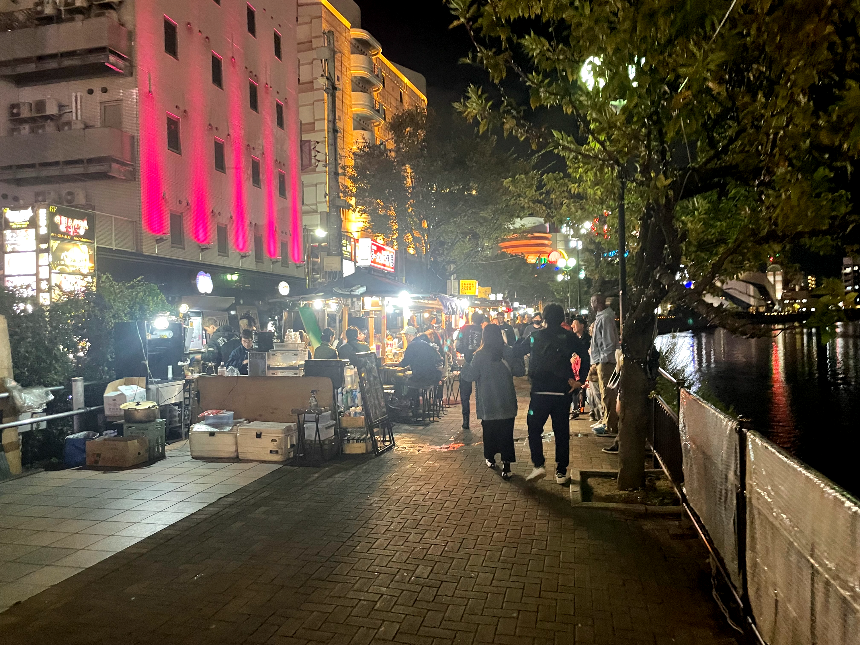 바로 옆이 '나카강'이고 그 강을 따라 '나카스 포장마차 거리'인데 우리나라 여수 밤바다의 '포장마차'와 유사해 보입니다.