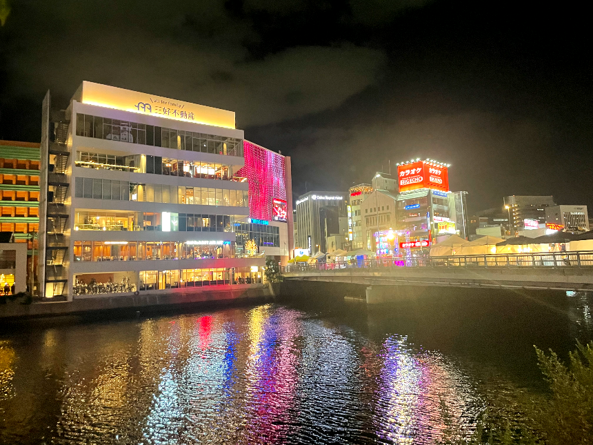 식사를 하고 배도 부르니 후쿠오카의 야경을 즐겨야 할 거 같아 걸어봅니다.