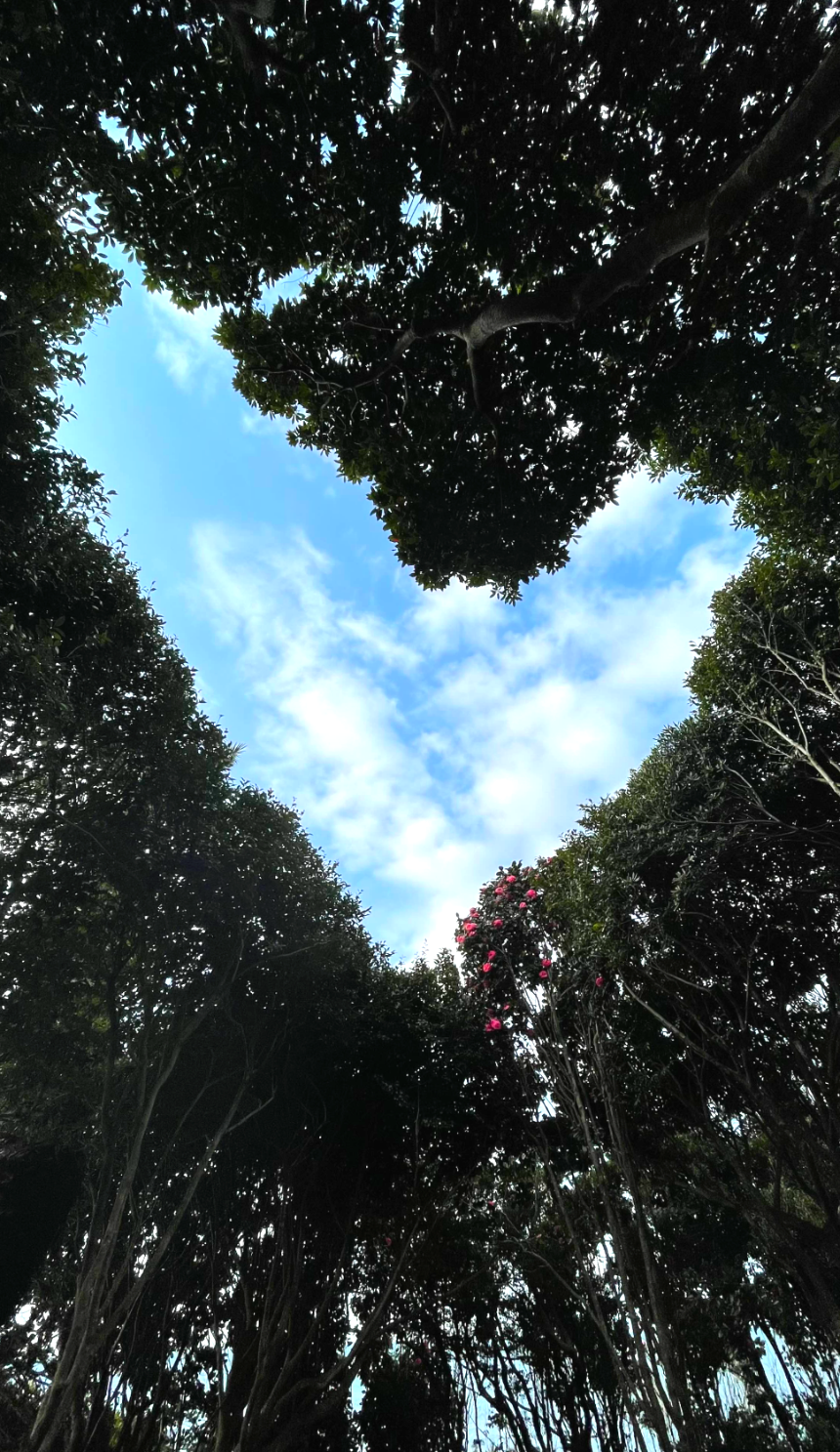 말 그대로 하트 모양으로 만들기 위해 빗겨나간 나뭇잎이 파란 하늘의 하트를 만들어 냅니다.