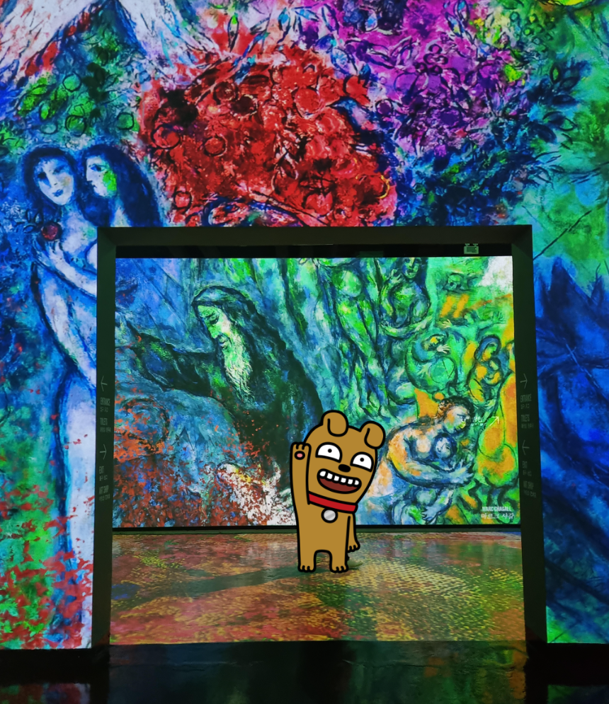 전시는 35분 동안 르누아르(Renoir), 모네(Monet), 피사로(Pissarro), 시냑(Signac), 드랭(Derain), 블라맹크(Vlaminck), 뒤피(Dufy)와 샤갈(Chagall) 등 약 20명에 달하는 예술가들의 명화 속으로 빠져들 수 있게 구성되어 있었고, 계속 사진 찍기에 바빴네요.