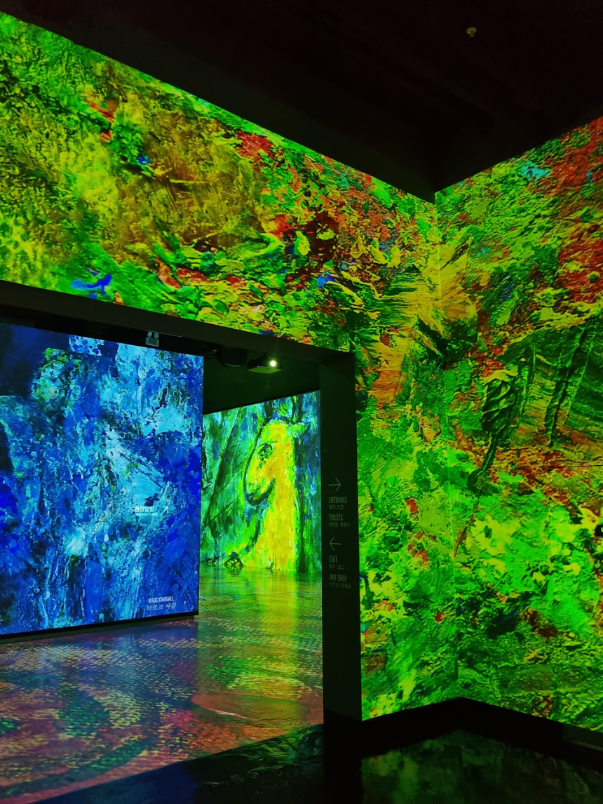 확실히 '빛의 벙커'는 감각의 앞단에서 시각을 넘어 예술에 몰입하는 경험을 제공하면서, 다양한 예술작품을 쉽게 이해하고 색다른 방법으로 감상할 수 있게 해 주네요.
