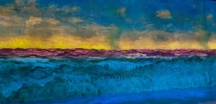 적막한 가운데 빛이 충만한 바다와 하늘이 절묘한 조화를 이루고 있습니다.