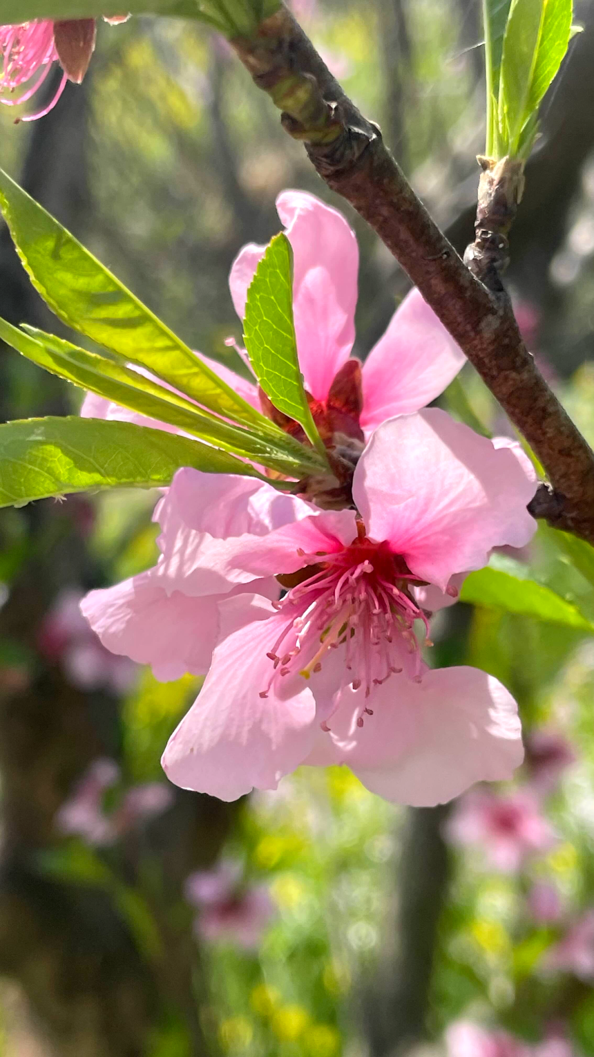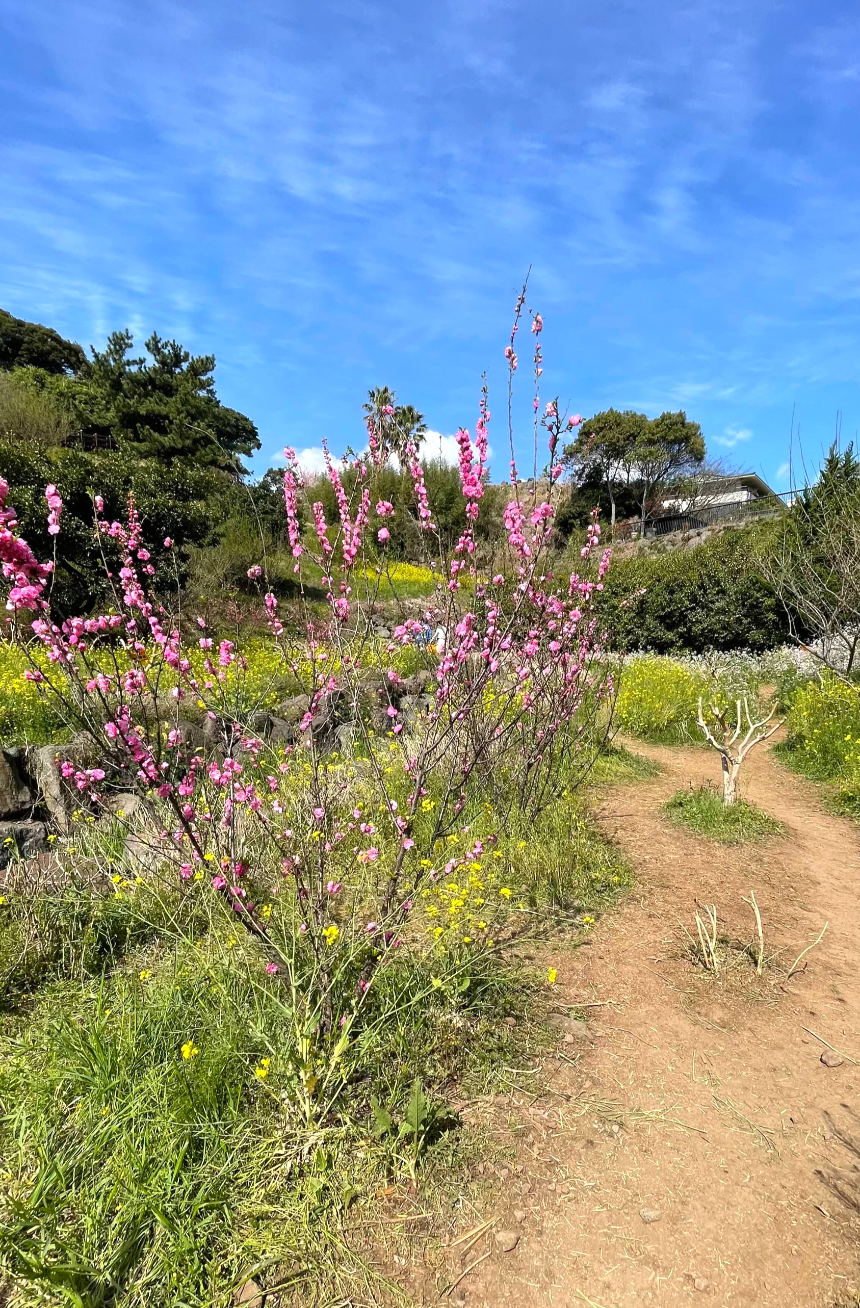 철쭉인지, 매화인지... 핑크빛 꽃이 피었는데 노란빛, 푸른빛 사이에서 많은 두각을 보입니다.