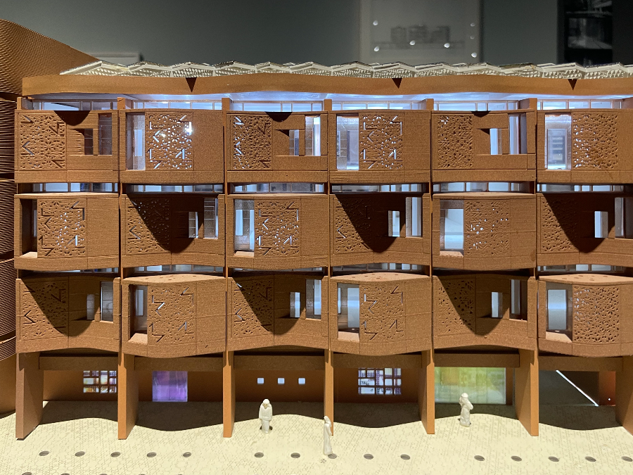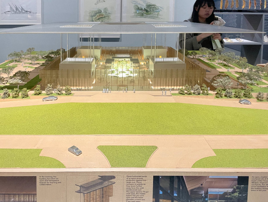 전통 사우디 건축물 연구에 바탕을 둔 디자인은 자체적인 공기 순환을 통해 일정 온도를 유지하도록 설계되었습니다.
