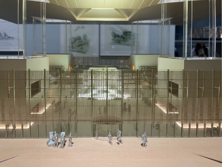 건물 입면의 청동판(물고기 지느러미형 구조)은 건물의 각 면이 태양에 노출되는 각도에 따라 크기, 높낮이, 밀도를 달리하도록 설계되었는데, 이는 시각적인 위계와 리듬을 부여하는 동시에 건물 내 자연 환기 시스템의 필수적인 요소로 작용합니다.