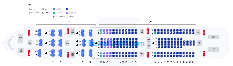 좌석너비 : 프레스티지석 좌석 너비 20.1인치 (51cm)일반석 18.1인치 (46cm)