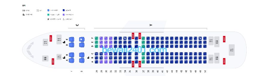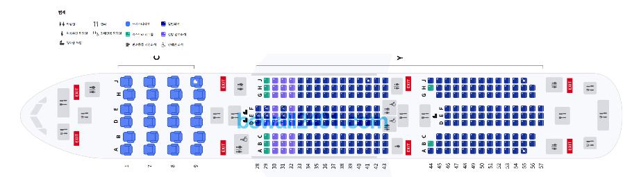 좌석너비 : 프레스티지석 좌석 너비 20.1인치 (51cm)일반석 18.1인치 (46cm)
